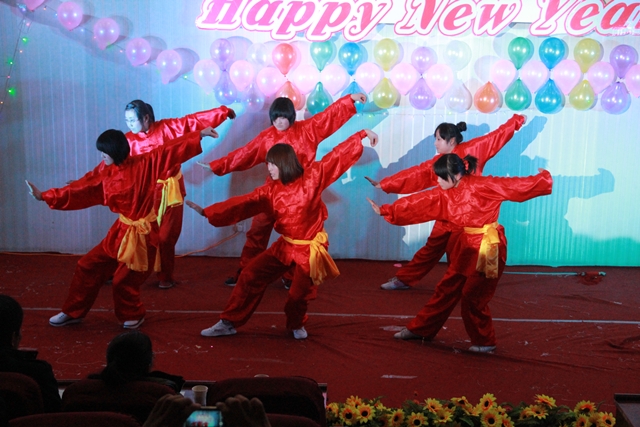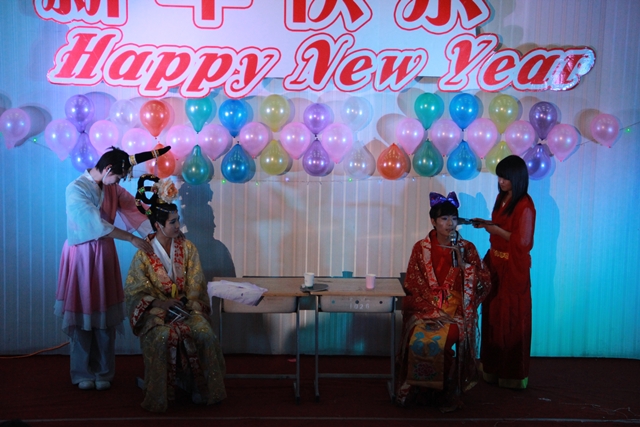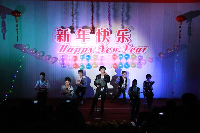 我系趙磊老師的薩克斯獨(dú)奏節(jié)奏明朗,富有磁力,優(yōu)美的旋律深深地吸引了全體觀(guān)眾。12級(jí)光熱班的張新輝,張一凡等同學(xué)反串《甄嬛傳》令現(xiàn)場(chǎng)的觀(guān)眾捧腹大笑。一首《祝福》的朗誦牽掛了所有觀(guān)眾,武術(shù)《中國(guó)功夫》令得全場(chǎng)驚呼,舞蹈《江南style》的精彩演出吸引了所有人的眼球。最后晚會(huì)在《同一首歌》的大合唱中緩緩落幕。