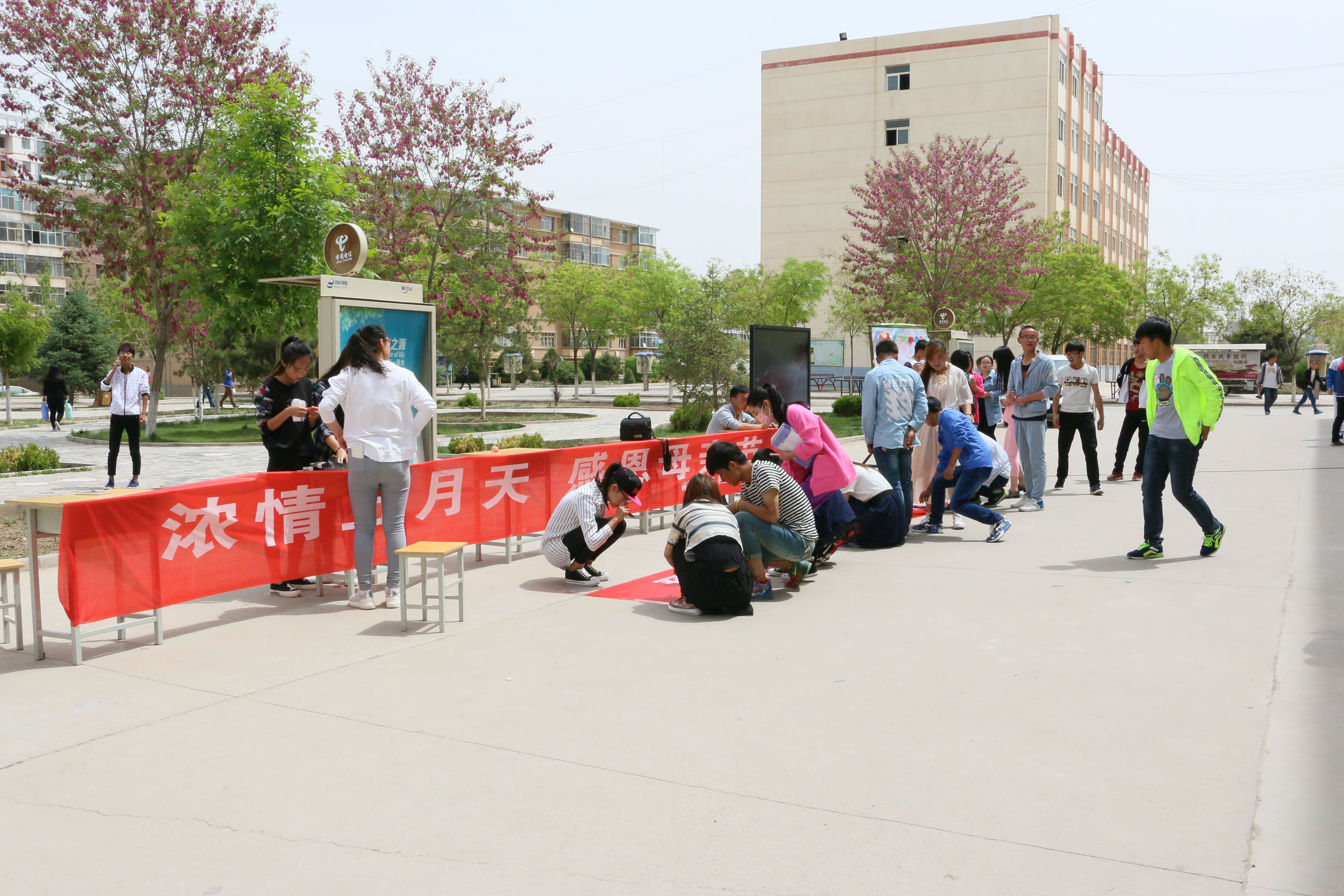 今天早晨十一點(diǎn)左右,能源系全體學(xué)生會成員以為這次的活動準(zhǔn)備好了一切,有母親節(jié)的海報(bào)、母親節(jié)許愿瓶、對媽媽想說的話的展板、以及自己對媽媽祝福的簽名