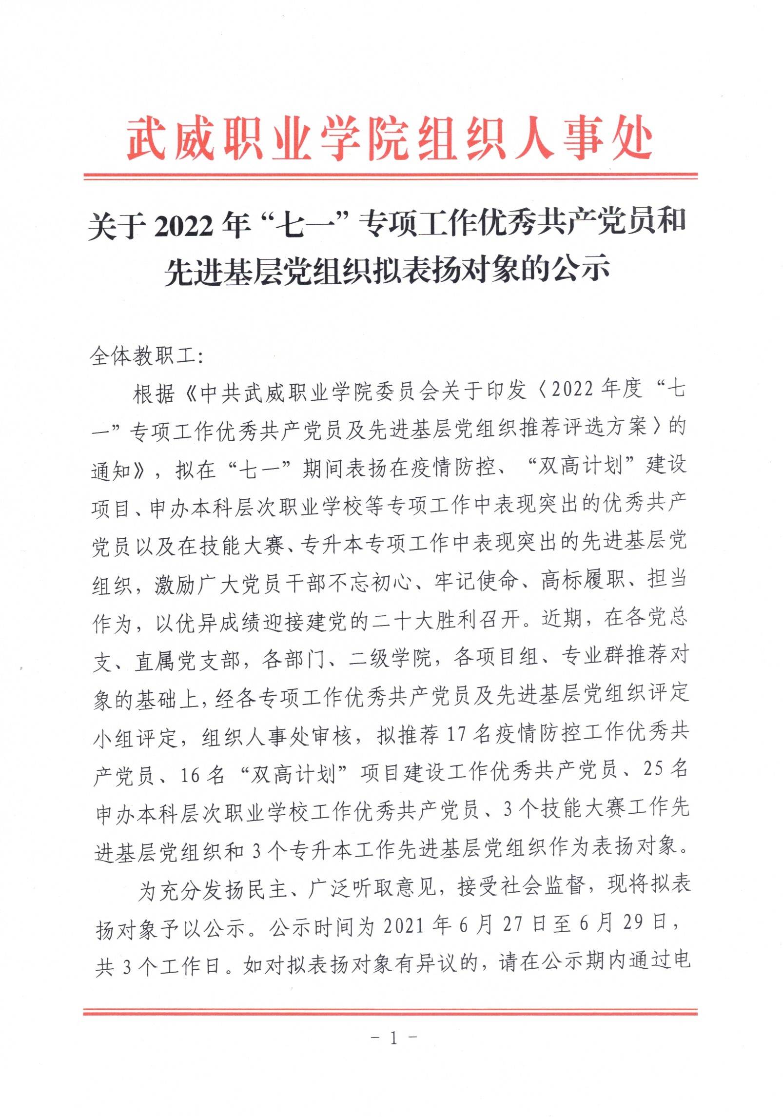 關(guān)于2022年“七一”專項工作優(yōu)秀共產(chǎn)黨員和先進(jìn)基層黨組織擬表揚(yáng)對象的公示