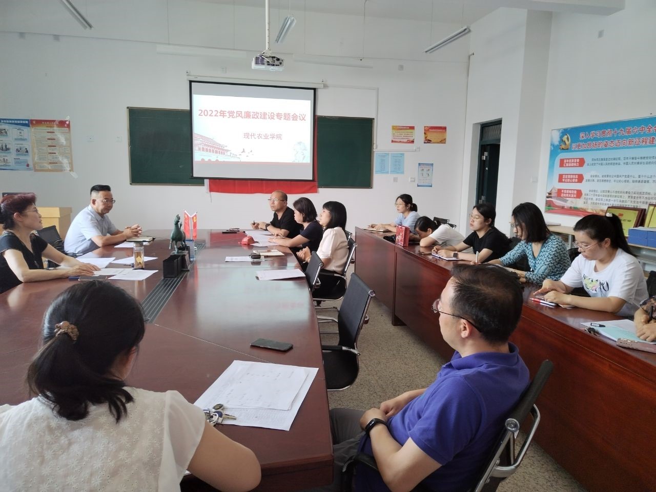 7月7日下午,現(xiàn)代農(nóng)業(yè)學(xué)院在行樹樓309黨員活動(dòng)室召開了2022年度上半年黨風(fēng)廉政建設(shè)工作專題會(huì)議。全體教師參加了此次會(huì)議,會(huì)議由現(xiàn)代農(nóng)業(yè)學(xué)院黨總支書記晏素珍主持。