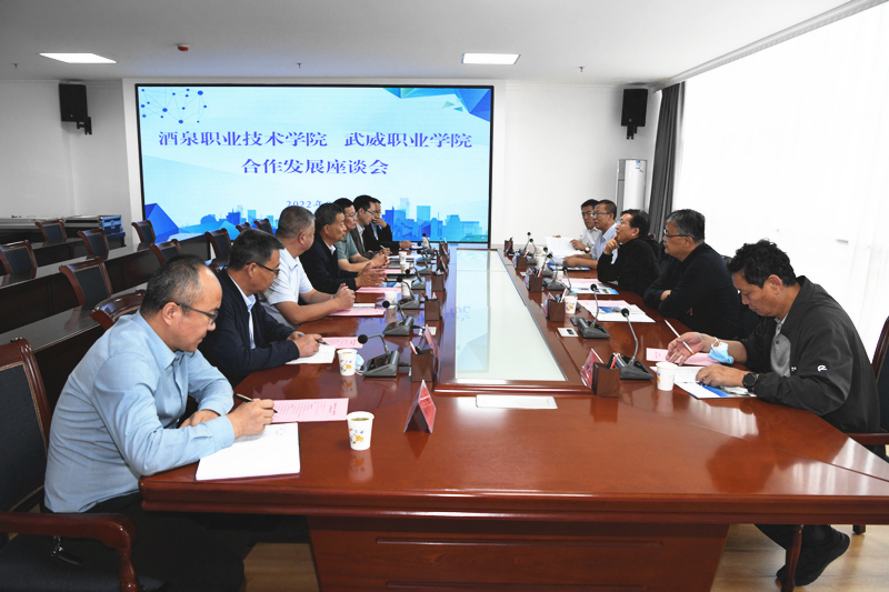 易志軍一行先后到學(xué)校紅色文化藝術(shù)館、翟存祥思想政治理論課名師工作室、武威市體育場(chǎng)、旅游管理專業(yè)實(shí)訓(xùn)室等地考察并在能源科技樓811會(huì)議室召開(kāi)了兩校合作發(fā)展座談會(huì),趙明向易志軍一行詳細(xì)介紹了學(xué)校近年來(lái)改革發(fā)展、人才培養(yǎng)、招生就業(yè)、合作辦學(xué)、“雙高計(jì)劃”學(xué)校建設(shè)等情況。易志軍就酒泉職業(yè)技術(shù)學(xué)院建設(shè)發(fā)展情況進(jìn)行了詳細(xì)介紹。雙方就河西走廊職業(yè)教育與區(qū)域產(chǎn)業(yè)互動(dòng)發(fā)展、融合發(fā)展、高質(zhì)量發(fā)展的路徑和方法進(jìn)行了深入探討,并交流了學(xué)校建設(shè)和管理方面好的經(jīng)驗(yàn)和做法。