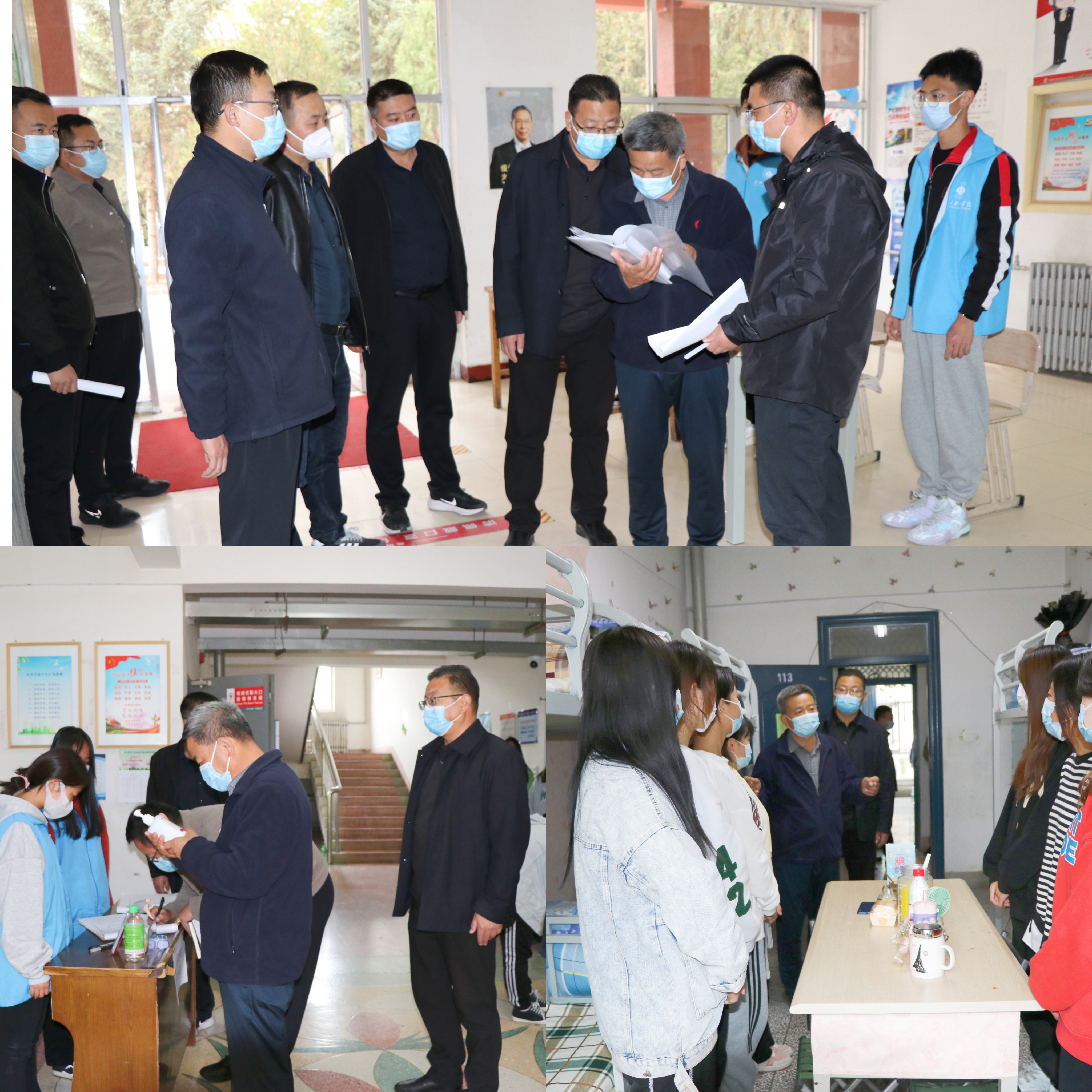 (學(xué)校領(lǐng)導(dǎo)深入學(xué)生公寓樓查看疫情防控和學(xué)生學(xué)習(xí)生活情況)