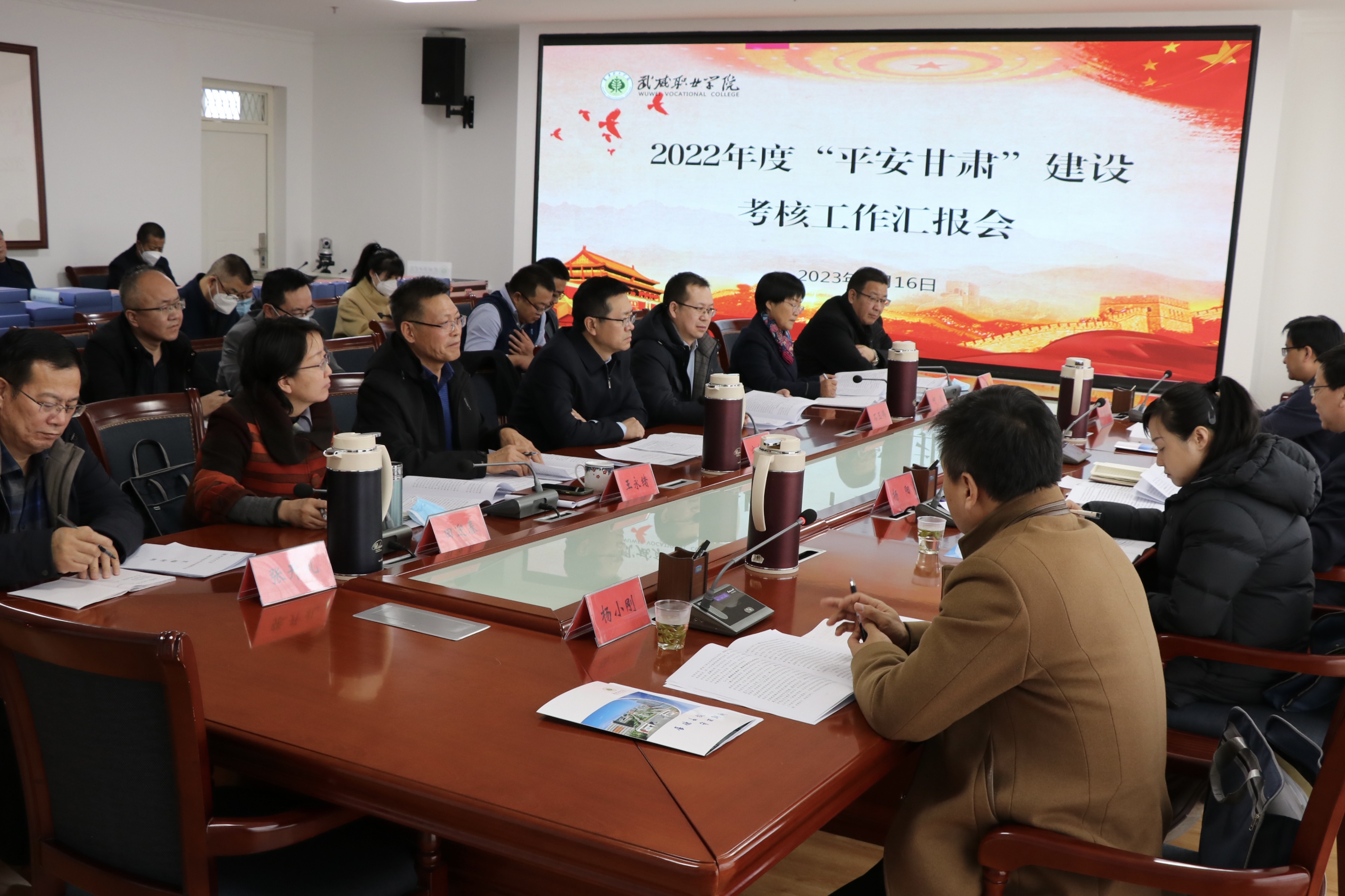 2月16日下午,平安甘肅建設(shè)第七考評(píng)組組長(zhǎng)、省信訪局副局長(zhǎng)劉全生帶領(lǐng)考評(píng)組一行來(lái)學(xué)校,檢查考核學(xué)校2022年度平安建設(shè)工作。學(xué)校黨委委員、副校長(zhǎng)王永緒主持會(huì)議,武威市市委政法委副書(shū)記寧生剛、在家校領(lǐng)導(dǎo)班子成員,各部門(mén)、二級(jí)學(xué)院負(fù)責(zé)人參加匯報(bào)會(huì)。