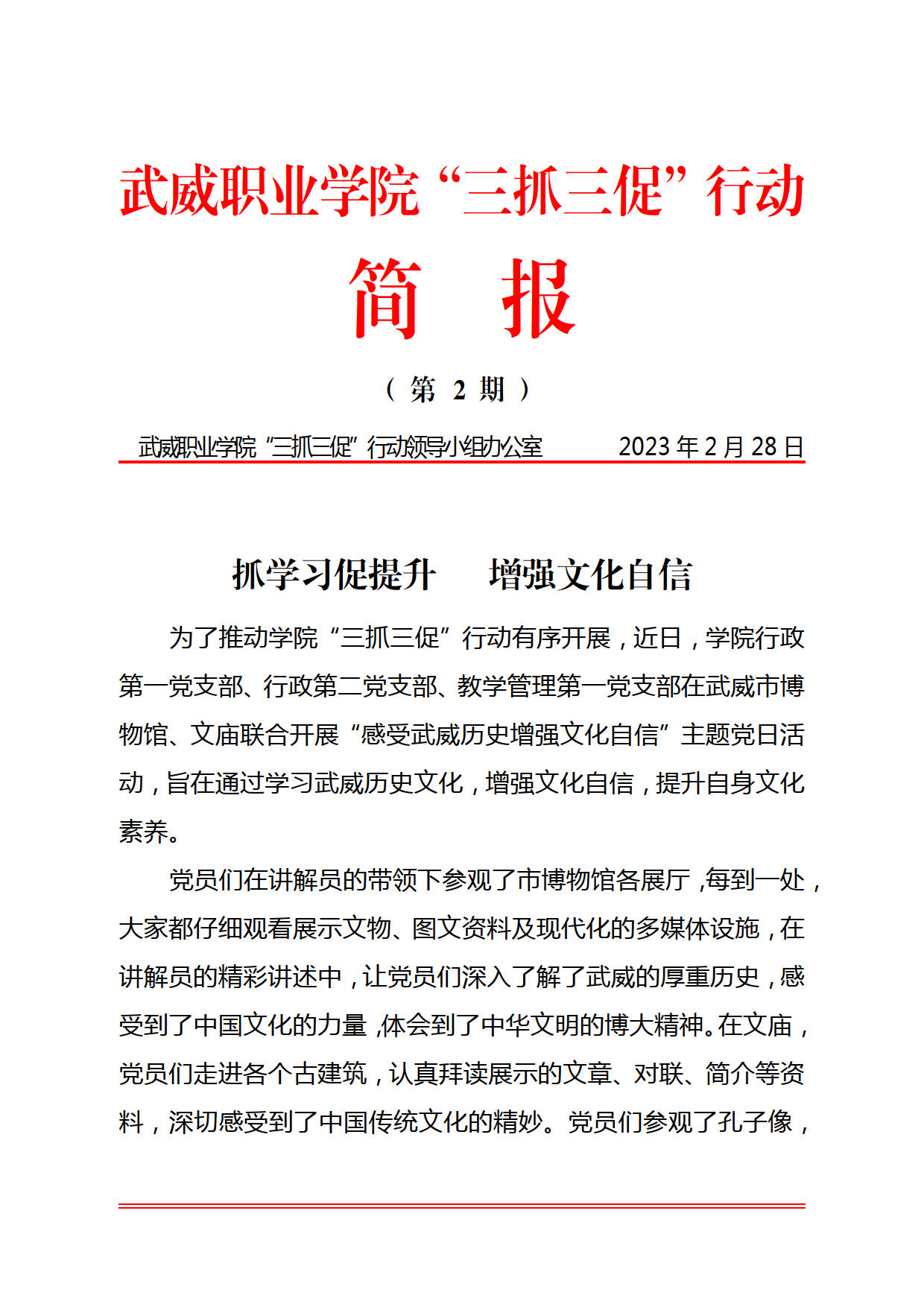 武威職業(yè)學院“三抓三促”行動簡報第2期