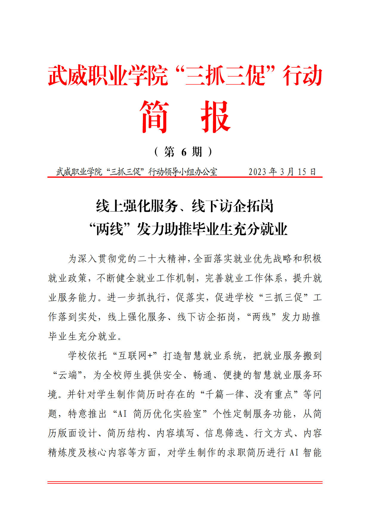 簡(jiǎn)報(bào)第6期:線上強(qiáng)化服務(wù)、線下訪企拓崗,“兩線”發(fā)力助推畢業(yè)生充分就業(yè)