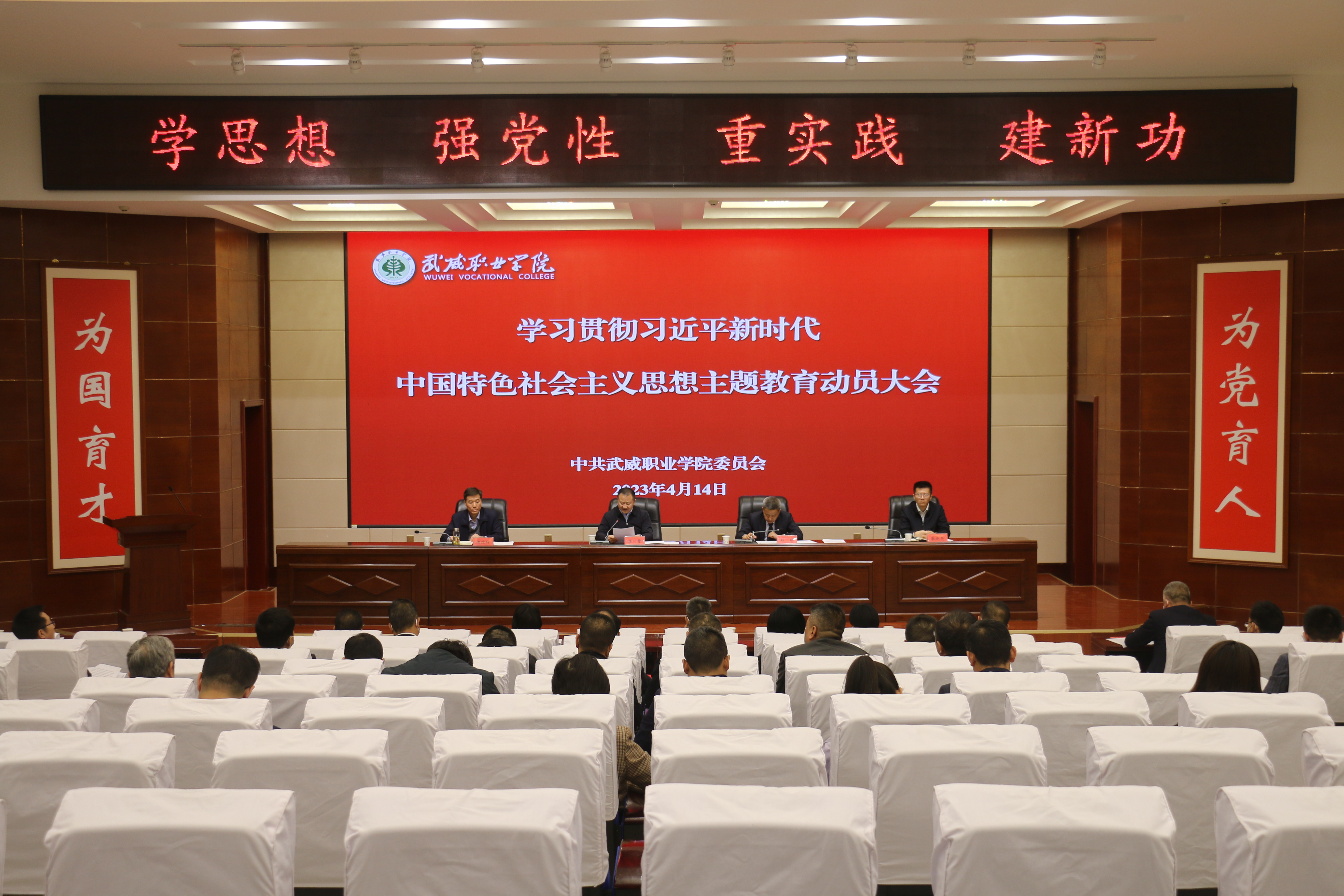 4月14日下午,學(xué)校召開(kāi)學(xué)習(xí)貫徹習(xí)近平新時(shí)代中國(guó)特色社會(huì)主義思想主題教育動(dòng)員部署會(huì)議。省委第十巡回指導(dǎo)組副組長(zhǎng)、省景泰川電力提灌水資源利用中心黨委委員、副主任廖贊到會(huì)指導(dǎo)并講話。學(xué)校黨委書(shū)記、校長(zhǎng)、主題教育領(lǐng)導(dǎo)小組組長(zhǎng)趙明主持會(huì)議,傳達(dá)中央主題教育工作會(huì)議精神和省委主題教育動(dòng)員部署會(huì)議精神并作動(dòng)員講話。
