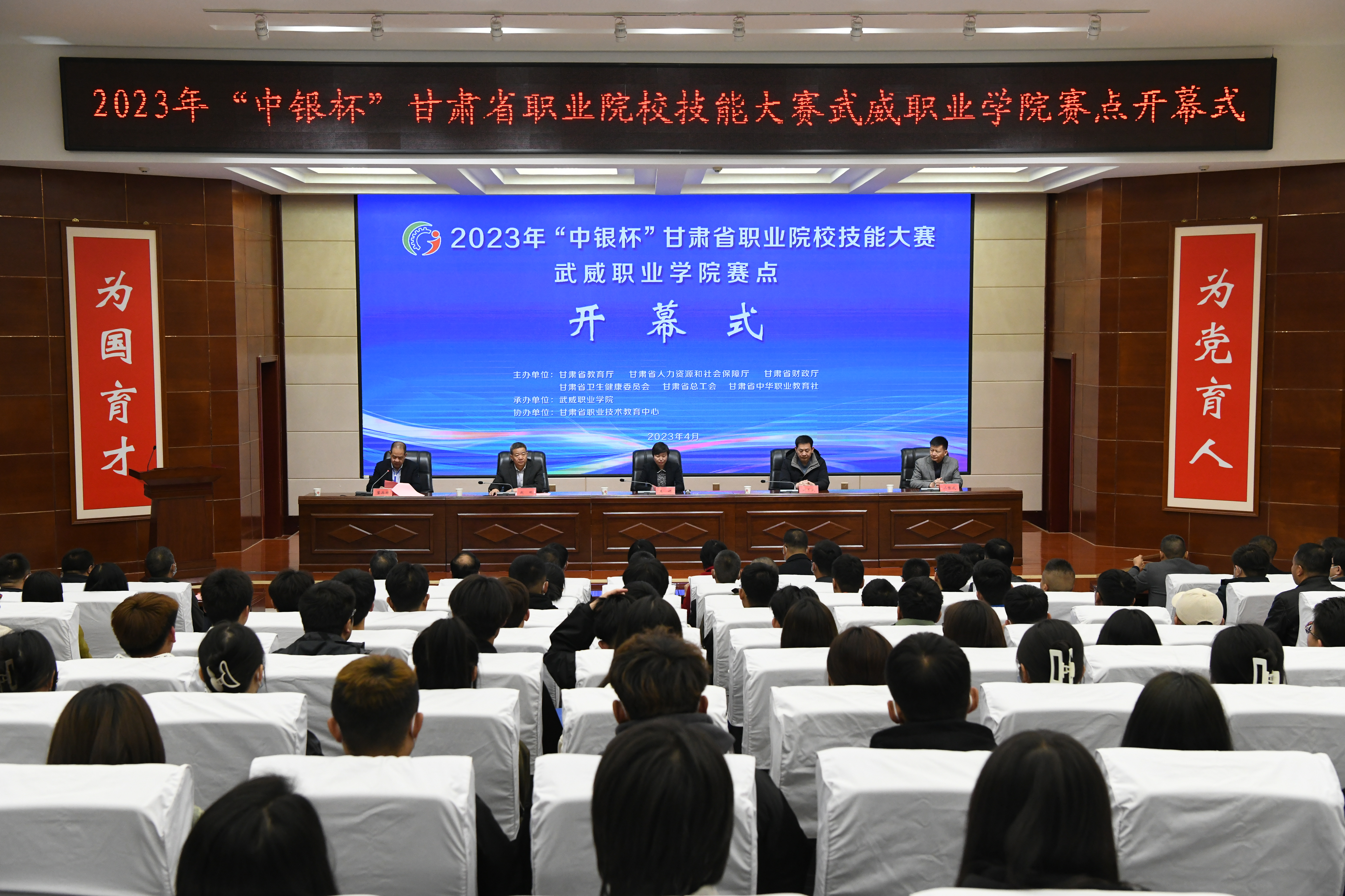 武威市教育局黨組書(shū)記、局長(zhǎng)王娟宣布2023年“中銀杯”甘肅省職業(yè)院校技能大賽武威職業(yè)學(xué)院賽點(diǎn)開(kāi)賽。