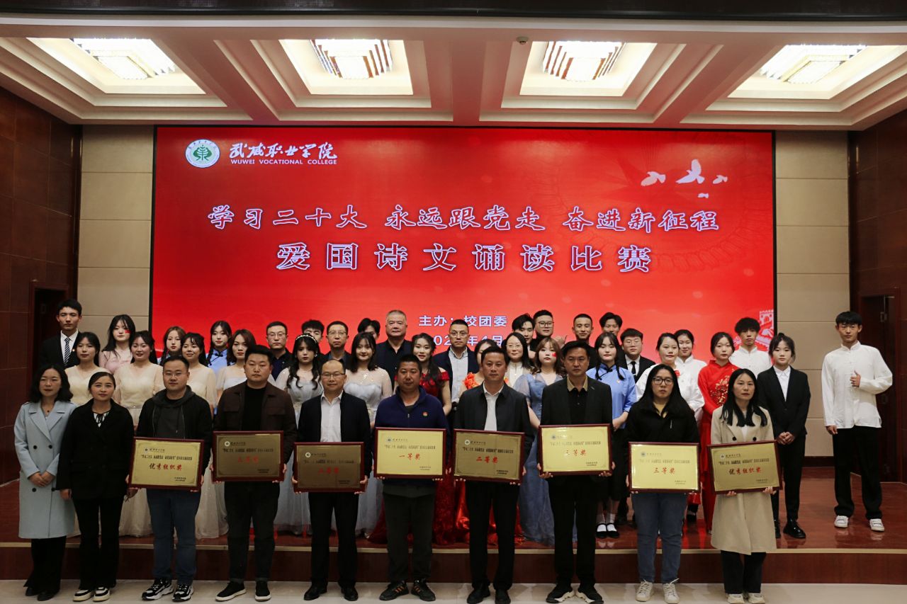 大賽于3月啟動(dòng),歷時(shí)一個(gè)月,各二級學(xué)院經(jīng)過初賽評比推選出9個(gè)優(yōu)秀節(jié)目入圍決賽。比賽現(xiàn)場,各參賽隊(duì)以“學(xué)習(xí)二十大、永遠(yuǎn)跟黨走、奮進(jìn)新征程”為主題,將傳承經(jīng)典詩文和弘揚(yáng)愛國主義精神結(jié)合,誦詩抒情、借詞言志,熱情謳歌中國共產(chǎn)黨不懈奮斗的光輝歷程,全面展現(xiàn)新時(shí)代青年以夢為馬,不負(fù)韶華的青春風(fēng)貌。校團(tuán)委原創(chuàng)編排表演的節(jié)目《追夢八步沙,奮斗正青春》,深情動(dòng)人,感染全場,歌頌了“六老漢”矢志艱苦奮斗的隴人品格,抒發(fā)了當(dāng)代青年永跟黨走,青春建功的豪情壯志。富余藝術(shù)感染力的經(jīng)典吟誦,穿插舞蹈、劇情和紅歌演唱,為廣大師生呈現(xiàn)了一場視聽盛宴。