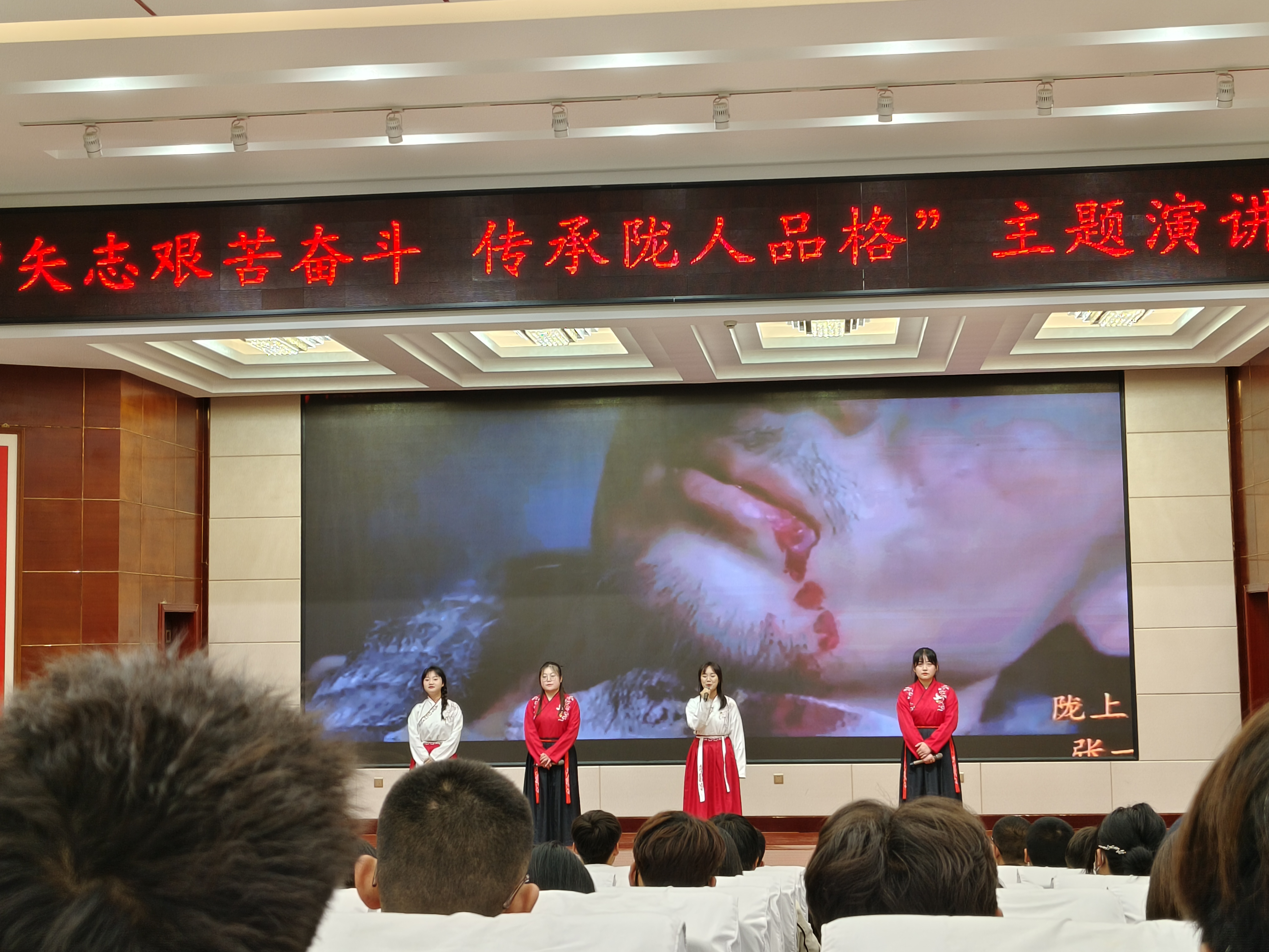? ? ? ?本次主題演講活動,不僅展示了同學(xué)們奮發(fā)向上的良好風(fēng)采,更激發(fā)了同學(xué)們愛黨愛國的熱情,發(fā)揮了良好的育人作用。我校將以“矢志艱苦奮斗 傳承隴人品格”青年主題文化活動為契機,以同學(xué)們喜聞樂見的活動形式為載體,引導(dǎo)同學(xué)們傳承隴人品格,爭做新時代的好青年。