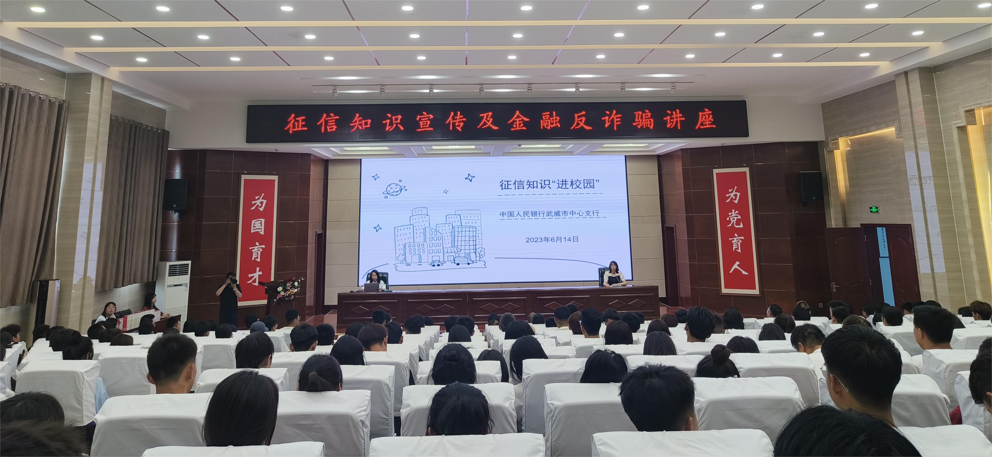 為普及金融、征信知識,提高學(xué)生的誠信意識和風(fēng)險意識,6月14日下午,在第16個全國“信用記錄關(guān)愛日”來臨之際,由我校和中國人民銀行武威市中心支行及10家商業(yè)銀行聯(lián)合主辦的“普及征信知識,提高誠信意識”為主題的征信知識進(jìn)校園宣傳活動在學(xué)校大學(xué)生活動中心前廣場和菁英廳舉行,學(xué)校500余名師生代表參加了本次活動。