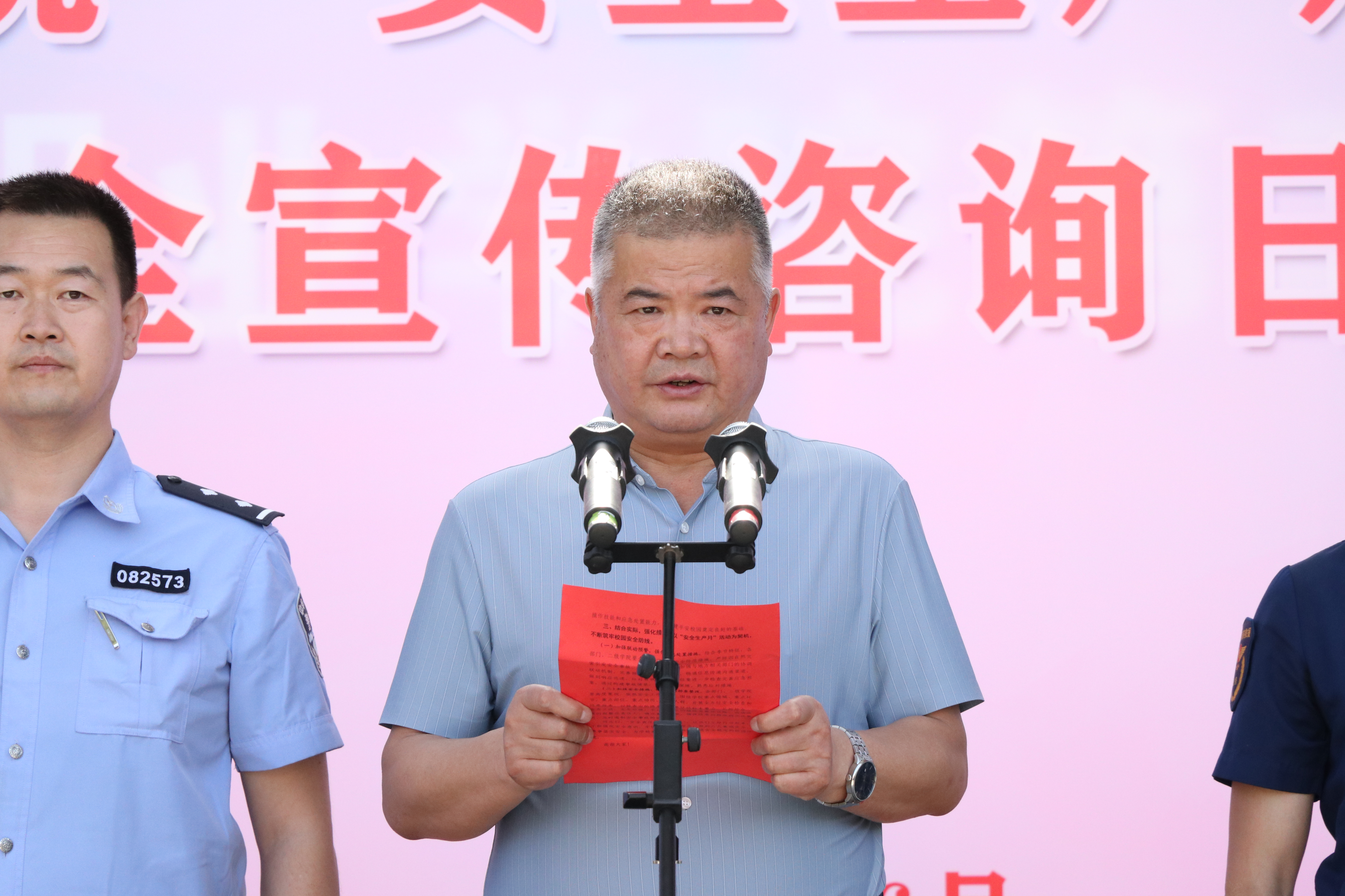6月16日下午,學(xué)校組織開展“安全生產(chǎn)月”活動啟動儀式暨“6·16”安全宣傳咨詢?nèi)栈顒樱_了以“人人講安全、個個會應(yīng)急”為主題的全國第22個“安全生產(chǎn)月”活動序幕。學(xué)校黨委委員、副校長王守云、西關(guān)派出所副所長藺福鵬、各相關(guān)部門及二級學(xué)院負(fù)責(zé)人出席活動。