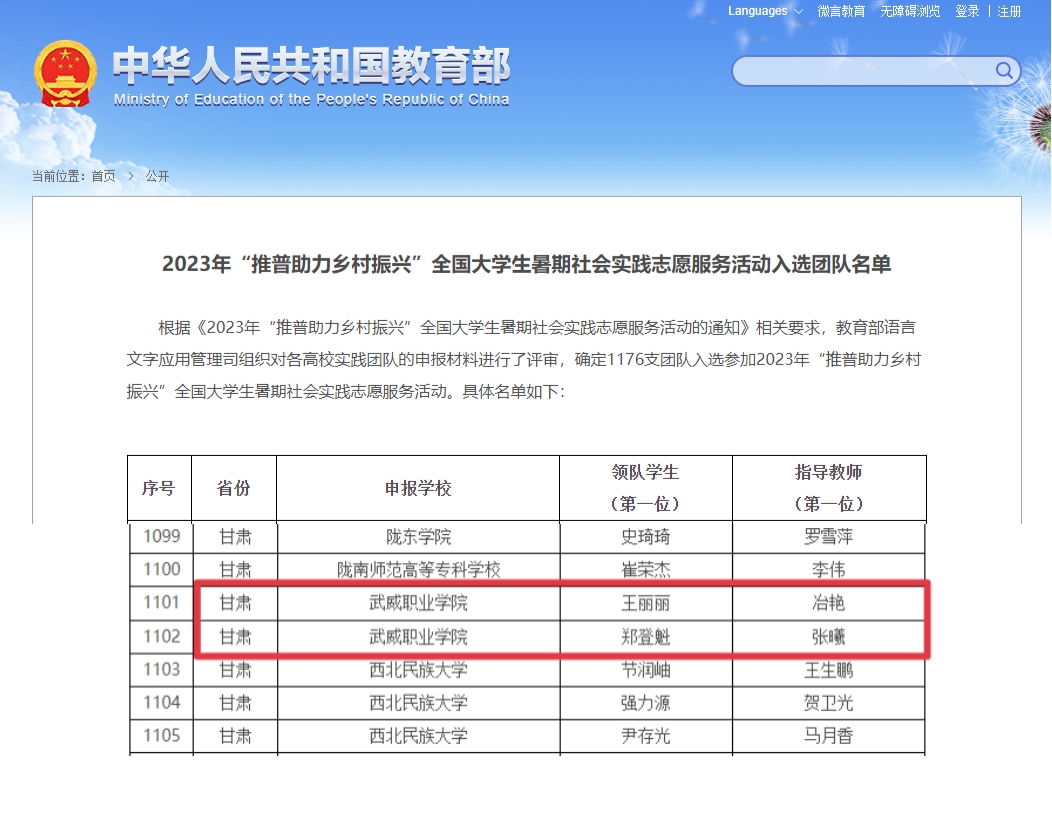 我校2支團(tuán)隊(duì)入選2023年“推普助力鄉(xiāng)村振興”全國(guó)大學(xué)生暑期社會(huì)實(shí)踐志愿服務(wù)活動(dòng)