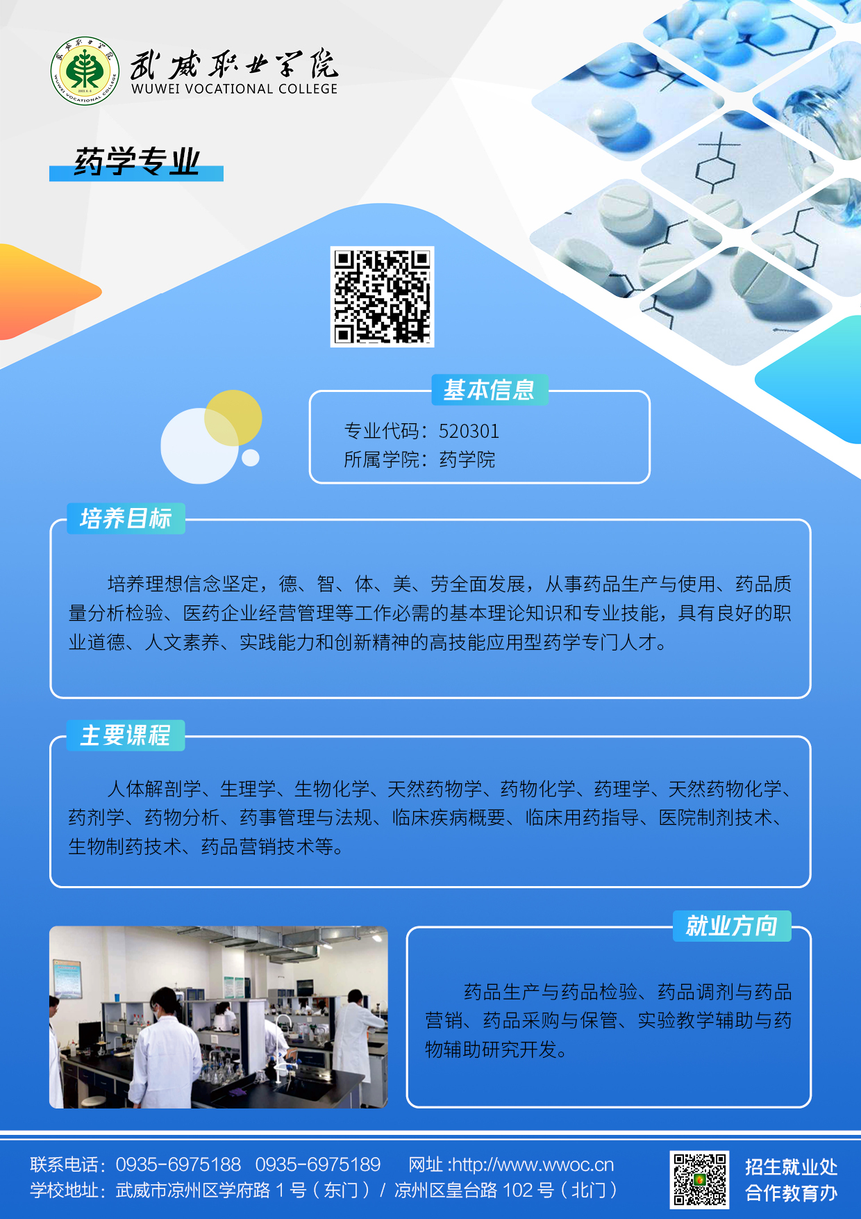 武威職業(yè)學(xué)院二級(jí)學(xué)院專業(yè)簡(jiǎn)介丨藥學(xué)院
