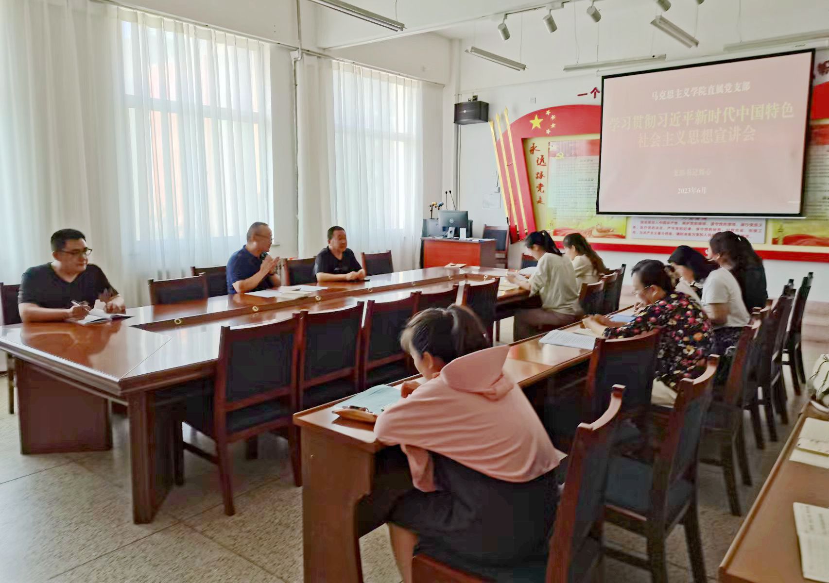 為推動(dòng)學(xué)習(xí)貫徹習(xí)近平新時(shí)代中國(guó)特色社會(huì)主義思想主題教育走深走實(shí),教育引導(dǎo)教師全面學(xué)習(xí)、深刻領(lǐng)會(huì)、準(zhǔn)確把握習(xí)近平新時(shí)代中國(guó)特色社會(huì)主義思想,按照學(xué)校宣講工作部署,6月29日,馬克思主義學(xué)院黨支部開(kāi)展了學(xué)習(xí)貫徹習(xí)近平新時(shí)代中國(guó)特色社會(huì)主義思想主題教育專(zhuān)題宣講活動(dòng),黨支部書(shū)記劉心作宣講,支部全體黨員參加活動(dòng)。