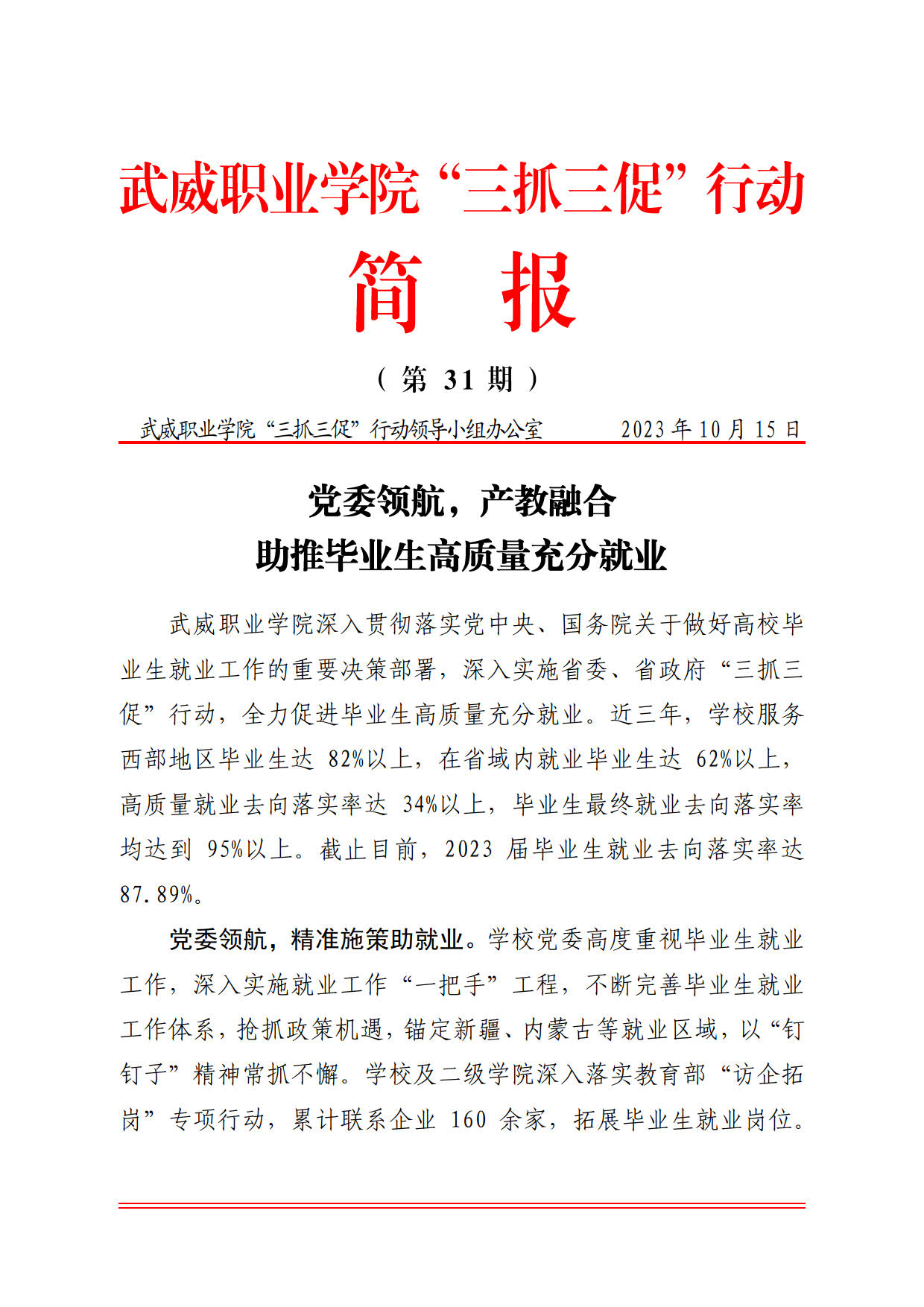 簡報(bào)第31期:黨委領(lǐng)航、產(chǎn)教融合,助推畢業(yè)生高質(zhì)量充分就業(yè)