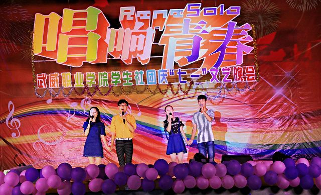 為紀念建黨95周年,622晚,武威職業(yè)學院學生社團在學院禮堂舉辦了慶“七一”文藝晚會。學院副院長潘玉華,學生工作處、招生就業(yè)處、工會、院團委負責人和800多名師生一同觀看了演出。