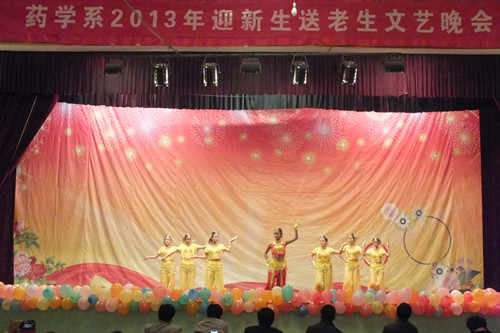 為喜迎2013級新生,增進師生情誼,歡送2011級畢業(yè)生順利走向?qū)嵙?xí)崗位,10月14日晚七點,藥學(xué)系在學(xué)院大禮堂舉辦2013級“迎新生·送老生”文藝晚會。