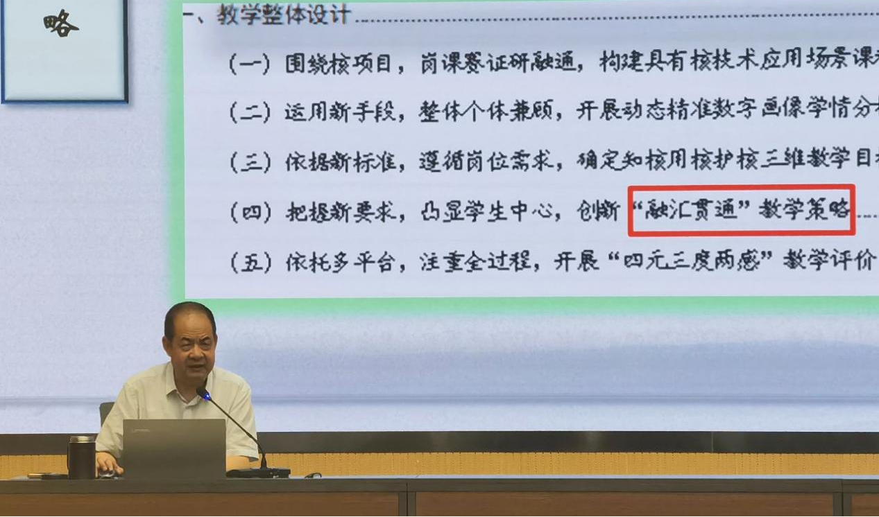 翟存祥以“獲獎作品是如何打磨的——以2023年核技術(shù)應(yīng)用作品為例”為題,對標(biāo)國家教學(xué)能力大賽標(biāo)準(zhǔn),總結(jié)參賽經(jīng)驗,對比賽中教學(xué)團(tuán)隊的組建、參賽項目的選題、人才培養(yǎng)方案的完善、課程標(biāo)準(zhǔn)的制訂、教學(xué)實(shí)施方案和教案撰寫、課堂實(shí)錄視頻的拍攝以及賽場答辯的準(zhǔn)備做了深入細(xì)致的分析。
