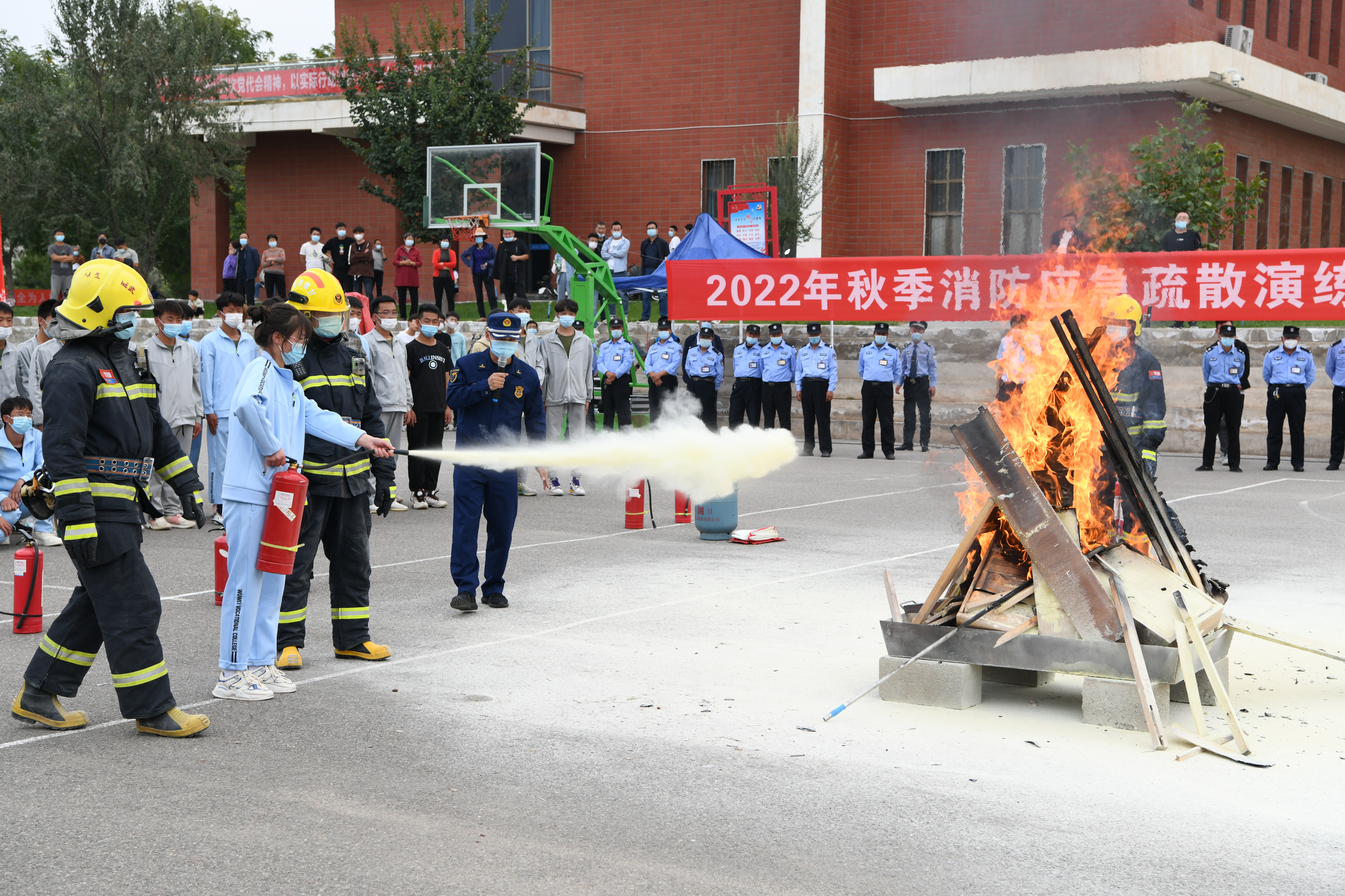 9月30日,學(xué)校聯(lián)合武威市消防救援支隊舉行了2022年秋季消防應(yīng)急疏散暨滅火演練活動。學(xué)校副校長王守云、武威市消防救援支隊涼都特勤站副站長張旭出席活動,安全保衛(wèi)處、學(xué)生工作處、各二級學(xué)院負(fù)責(zé)人和輔導(dǎo)員、班主任現(xiàn)場觀摩演練,約4200多名2022級新生參加了演練。