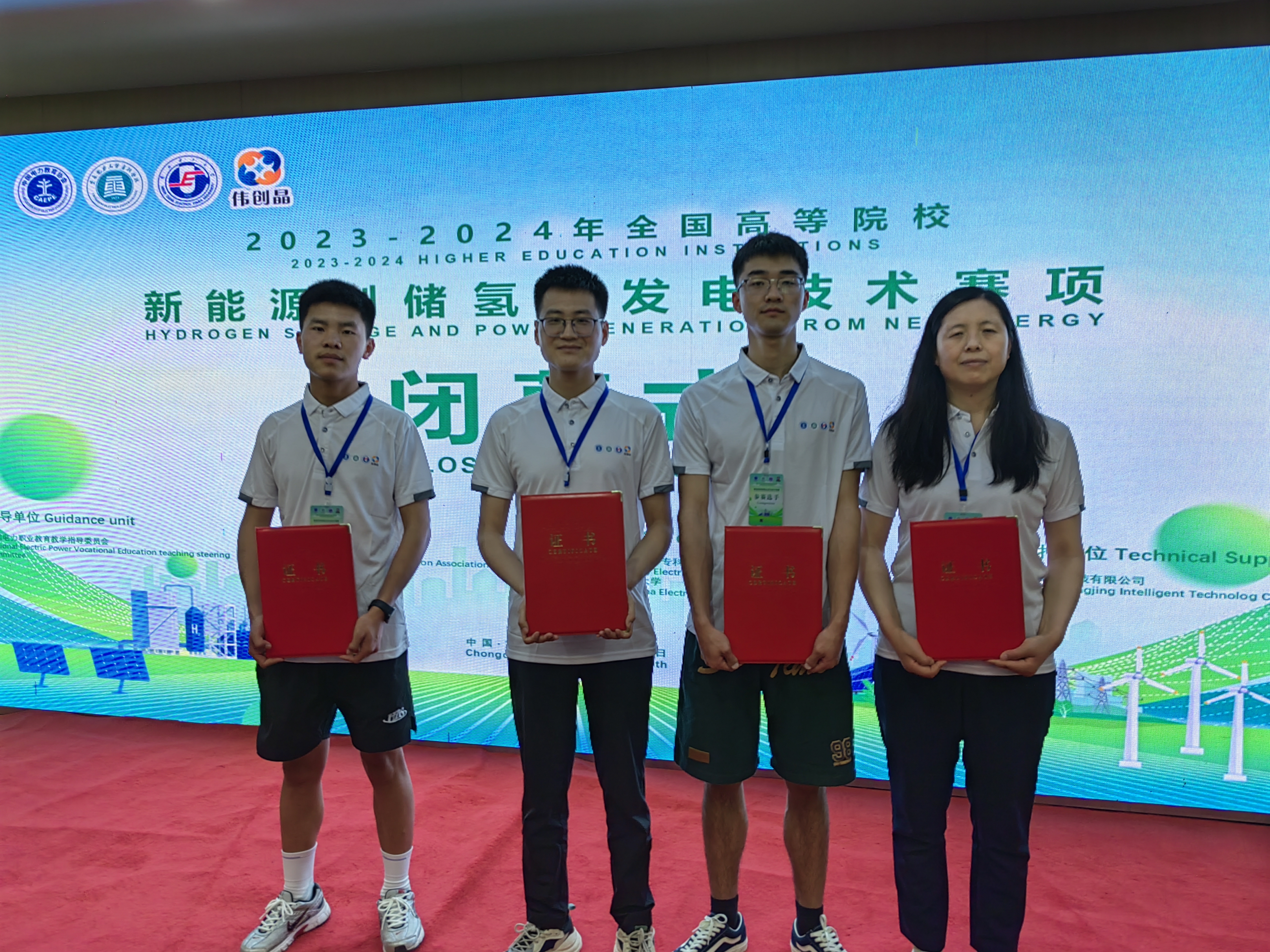 5月17日,全國(guó)首屆高等學(xué)校新能源制儲(chǔ)氫及發(fā)電技術(shù)競(jìng)賽在重慶電力高等??茖W(xué)校舉行,本次大賽由全國(guó)電力職業(yè)教育教學(xué)指導(dǎo)委員會(huì)指導(dǎo),中國(guó)電力教育協(xié)會(huì)主辦,華北電力大學(xué)、重慶電力高等??茖W(xué)校承辦。全國(guó)有22個(gè)省市48所高校108支隊(duì)伍參賽。參賽采用1名教師和1名學(xué)生師生聯(lián)賽方式進(jìn)行。我校中科低碳新能源技術(shù)學(xué)院教師王續(xù)峰和學(xué)生王智組成的參賽1隊(duì)榮獲全國(guó)二等獎(jiǎng),教師黃菊梅和學(xué)生董杰組成的參賽2隊(duì)榮獲全國(guó)三等獎(jiǎng)。