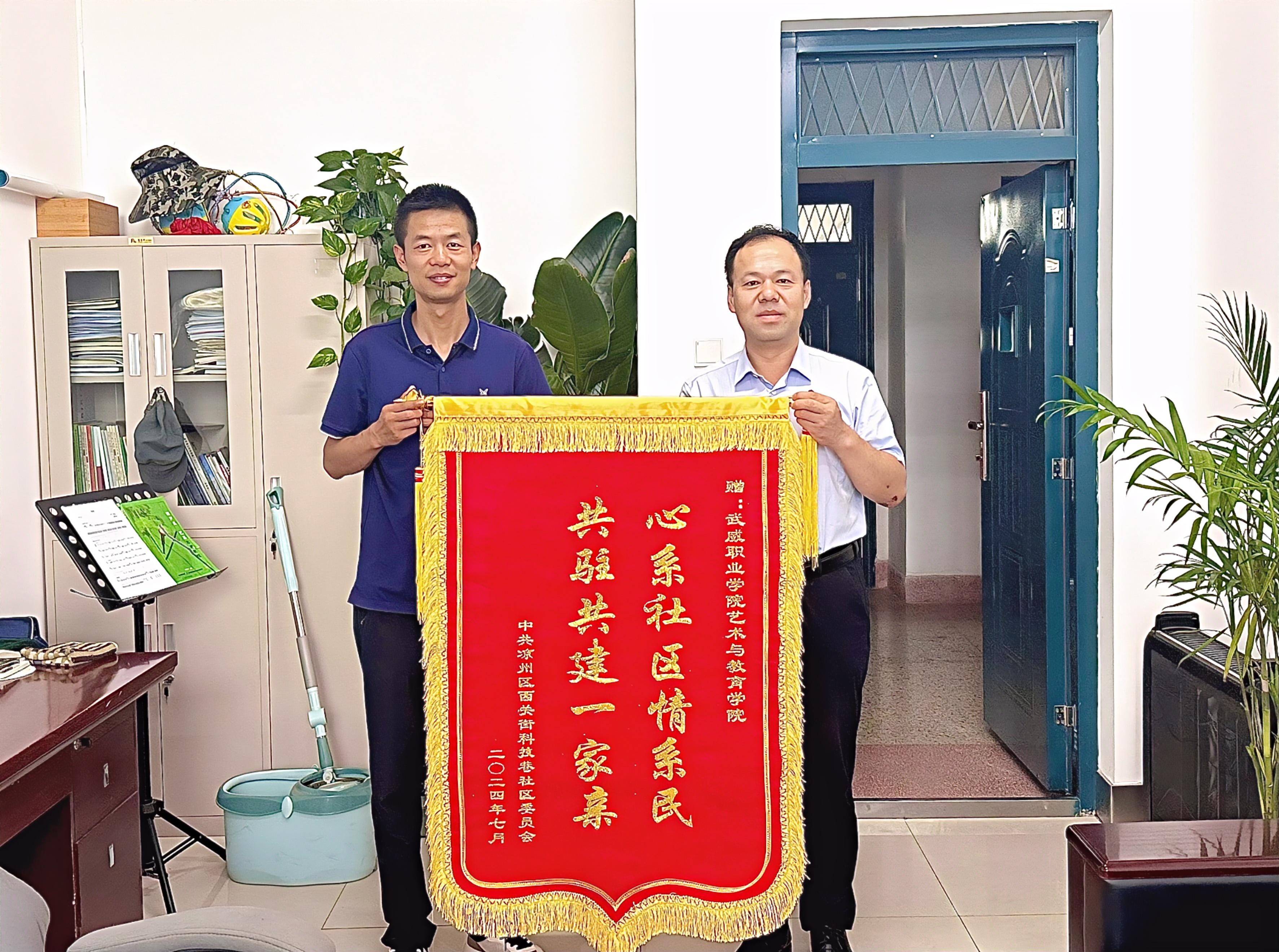 一份榮譽,一份信任,一份鼓勵。此次贈旗是對我院在西關科技巷社區(qū)開展社會實踐活動成果的充分肯定,有助于進一步調動學生參與社會實踐活動的積極性,教育引導學生在社會課堂中“受教育、展才干、作貢獻”。下一步,我院將深入推進學生志愿服務活動,為基層社會治理和文明武威高質量發(fā)展添磚加瓦!