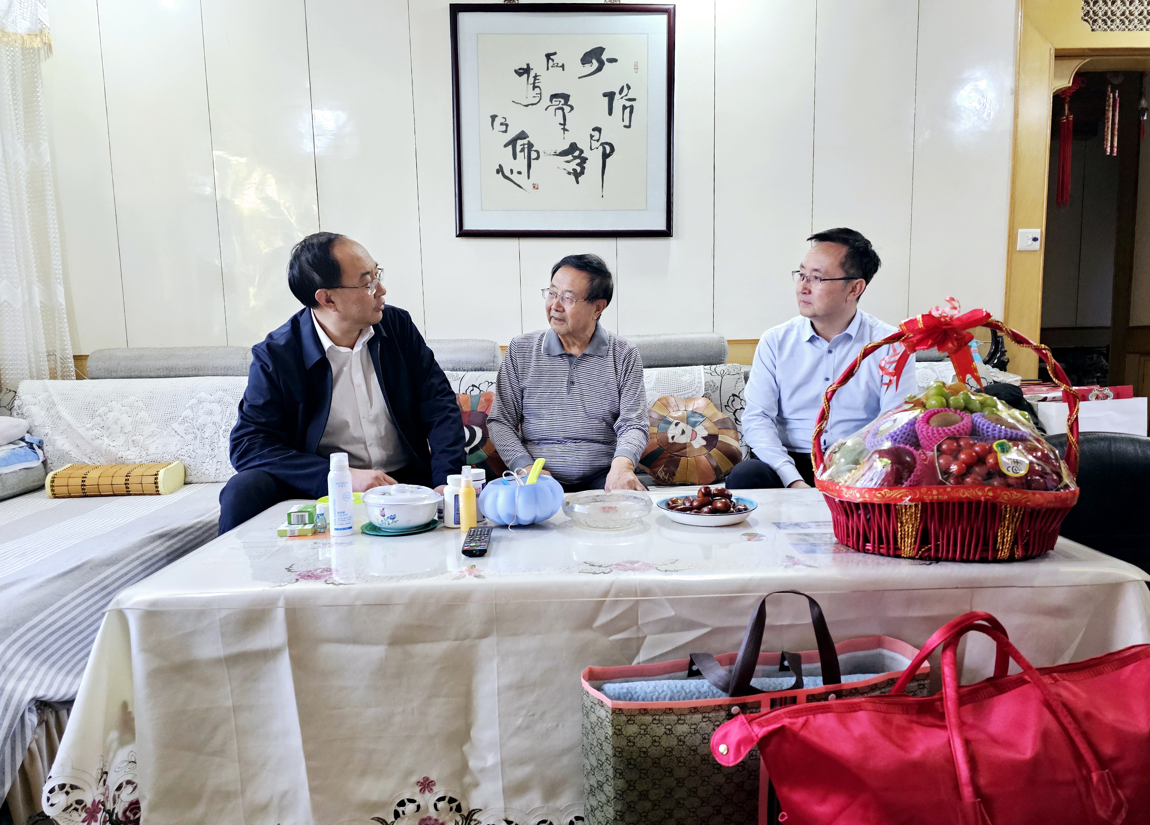 走訪中,慰問組與退休老干部及家屬促膝交談,通過拉家常、聊健康、談發(fā)展的方式,認真傾聽他們的身體及生活狀況和服務(wù)需求,對老干部們提出的疑問當面進行解答,并感謝他們對學校發(fā)展和建設(shè)作出的貢獻。