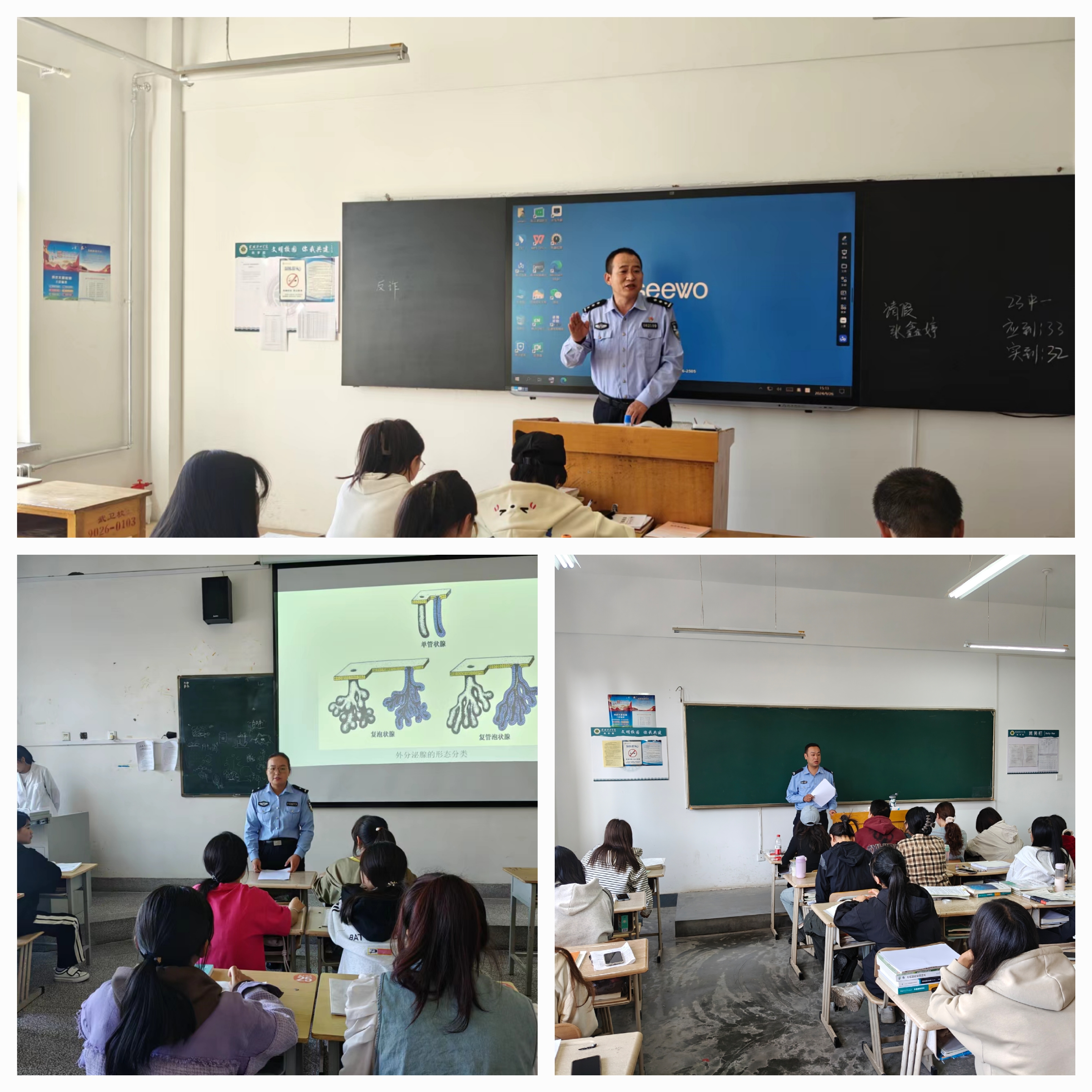 為提高廣大師生識詐、防詐、反詐意識和能力,筑牢師生遠(yuǎn)離毒品的安全屏障,有效保護(hù)廣大師生的生命財(cái)產(chǎn)安全,學(xué)校會同武威市涼州區(qū)西關(guān)街派出所深入開展了反電信詐騙和禁毒知識進(jìn)課堂講解活動。自9月26日開始,涼州區(qū)西關(guān)街派出所選派10余名公安干警深入到每個(gè)教學(xué)班級進(jìn)行反電信詐騙、禁毒等安全防控知識講解,活動覆蓋學(xué)校所有師生。