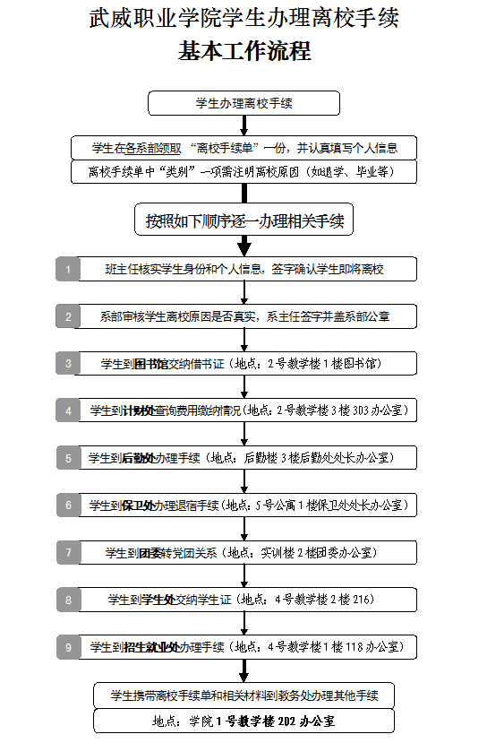 學(xué)院大中專(zhuān)學(xué)生辦理離校手續(xù)基本工作流程