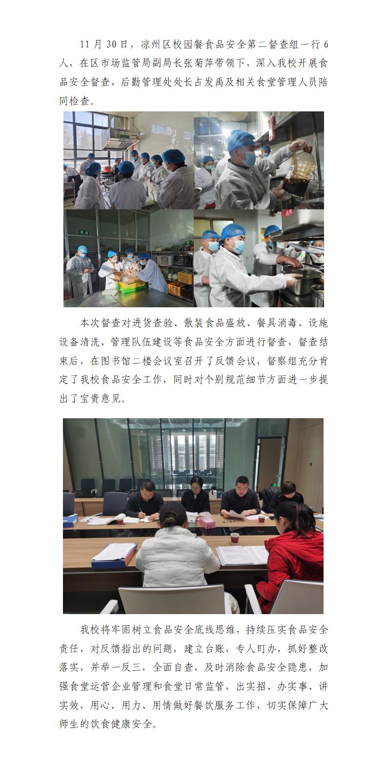 涼州區(qū)校園餐食品安全第二督查組來(lái)我校開展食品安全專項(xiàng)督查
