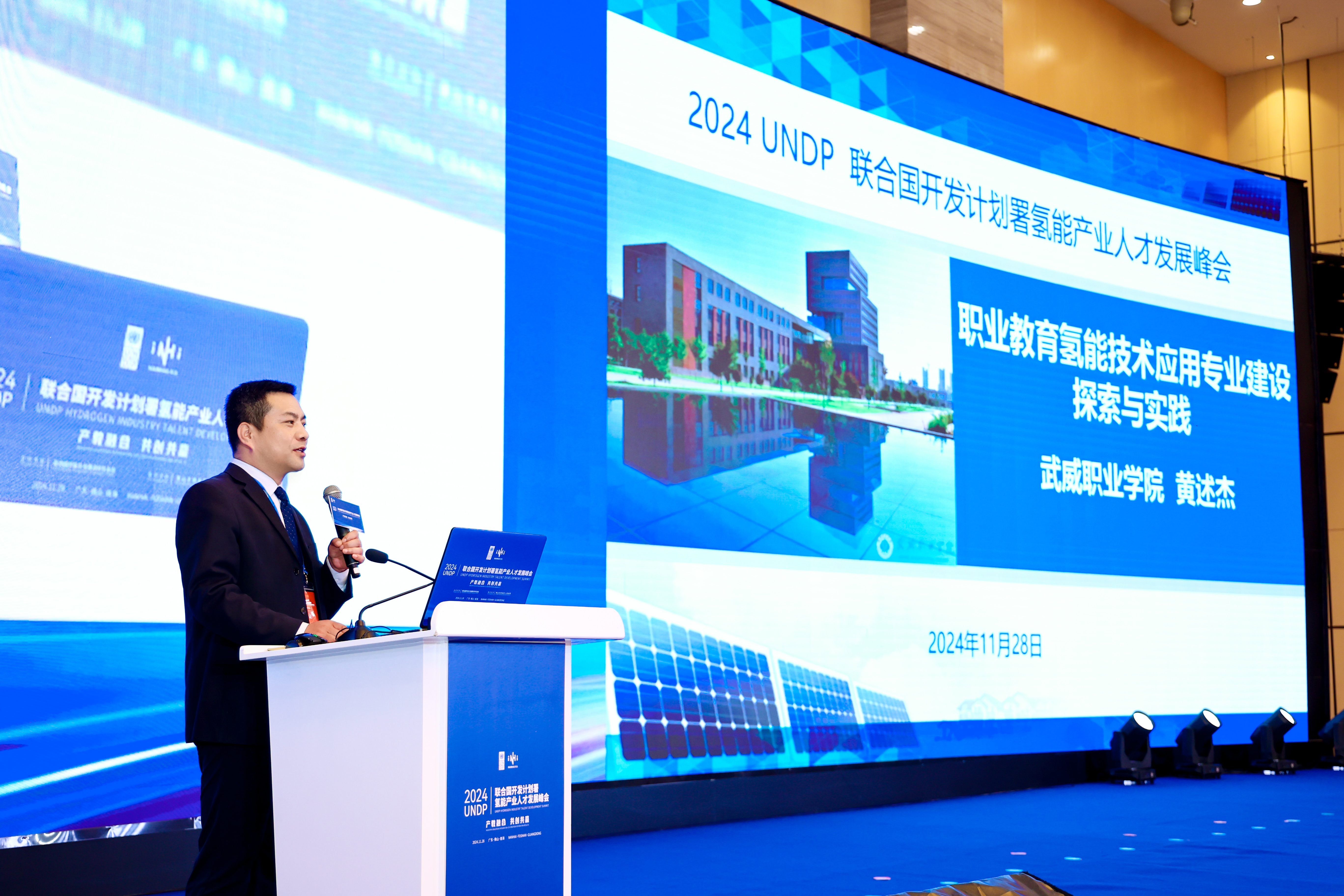 11月28日,由聯(lián)合國開發(fā)計劃署駐華代表處、佛山市南海區(qū)人民政府聯(lián)合主辦的UNDP(The United Nations Development Programme 聯(lián)合國開發(fā)計劃署)氫能產業(yè)人才發(fā)展峰會于佛山市成功舉行。本次峰會作為全國首個由國際機構主導的國際氫能產業(yè)人才會議,聚焦氫能領域高素質技能人才的培養(yǎng),推動產教深度融合,探索為產業(yè)發(fā)展提供重要技能型人才支撐路徑。我院中科低碳新能源技術學院院長黃述杰教授、王廣華博士和王續(xù)峰老師參加此次會議。