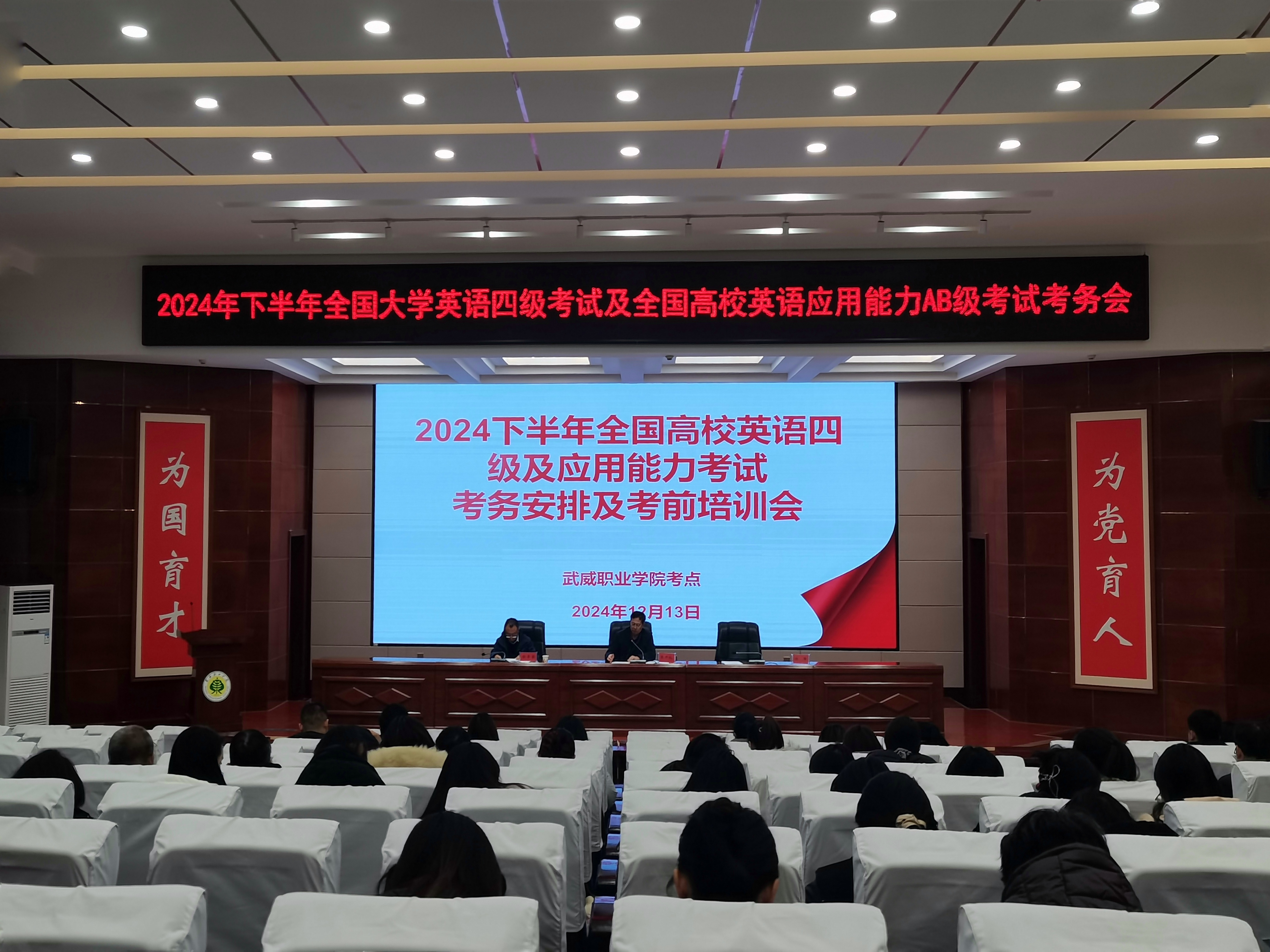 12月13日下午,在菁英廳召開了全國大學(xué)生英語四級暨全國高校英語應(yīng)用能力AB級考試的考務(wù)安排及考前培訓(xùn)會議。會上,黨委副書記、副校長張開禮強調(diào)了考試紀律的重要性,要求所有監(jiān)考人員和考生嚴格遵守考試規(guī)定,確??荚嚨墓健⒐晚樌M行。培訓(xùn)考試中心主任顏魯薪就考試的各項具體事宜進行了詳細安排,包括考試流程、考場布置、試卷分發(fā)與回收等環(huán)節(jié),確??荚嚬ぷ鞯挠行蜻M行。