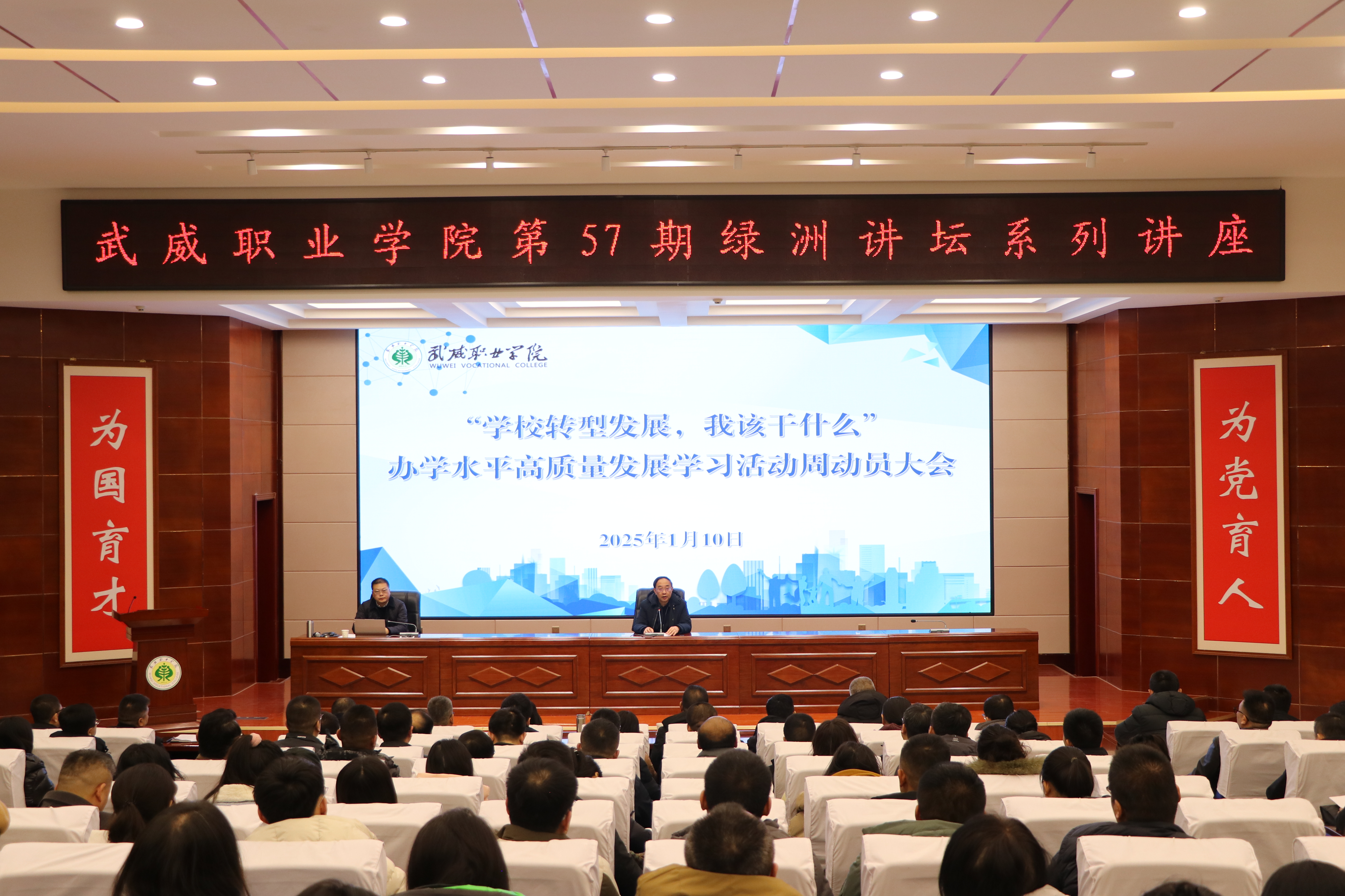 1月10日下午,學(xué)校第五十七期綠洲講壇暨辦學(xué)水平高質(zhì)量發(fā)展學(xué)習(xí)活動(dòng)周動(dòng)員大會(huì)在菁英廳順利啟動(dòng),學(xué)校領(lǐng)導(dǎo)、中層管理干部、教研室主任及教師代表共210余人參加了活動(dòng)。黨委副書(shū)記翟存祥主持活動(dòng)。