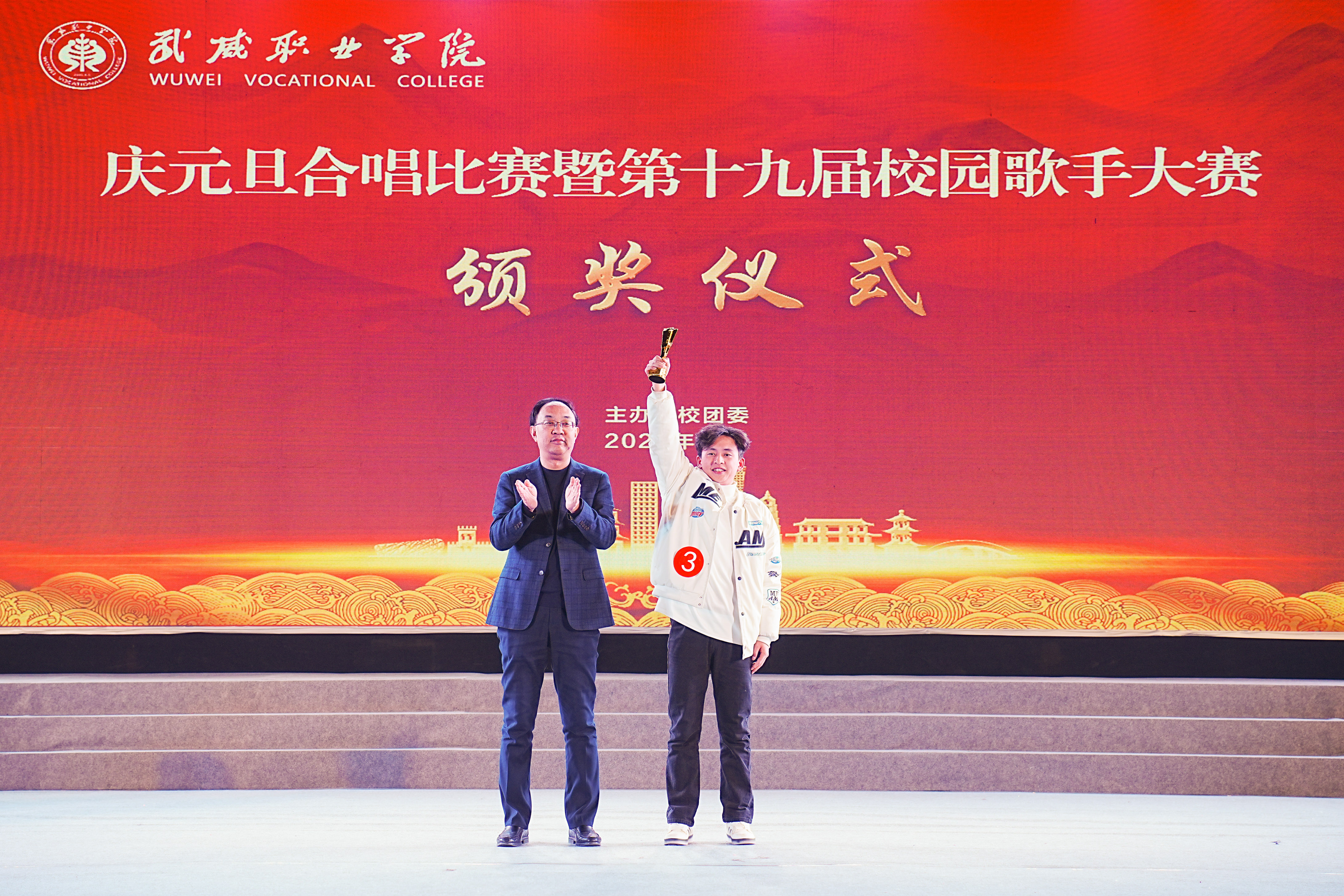 歌聲獻(xiàn)禮時(shí)代,青春唱響未來(lái)。12月26日晚,學(xué)?!皯c元旦”合唱比賽暨第十九屆校園歌手大賽在體育館成功舉辦。學(xué)校黨委書記王宏出席活動(dòng)并為獲獎(jiǎng)集體和個(gè)人頒獎(jiǎng),黨委委員、副校長(zhǎng)王守云出席活動(dòng),各二級(jí)學(xué)院和相關(guān)部門負(fù)責(zé)人與2000余名師生現(xiàn)場(chǎng)觀看了比賽。