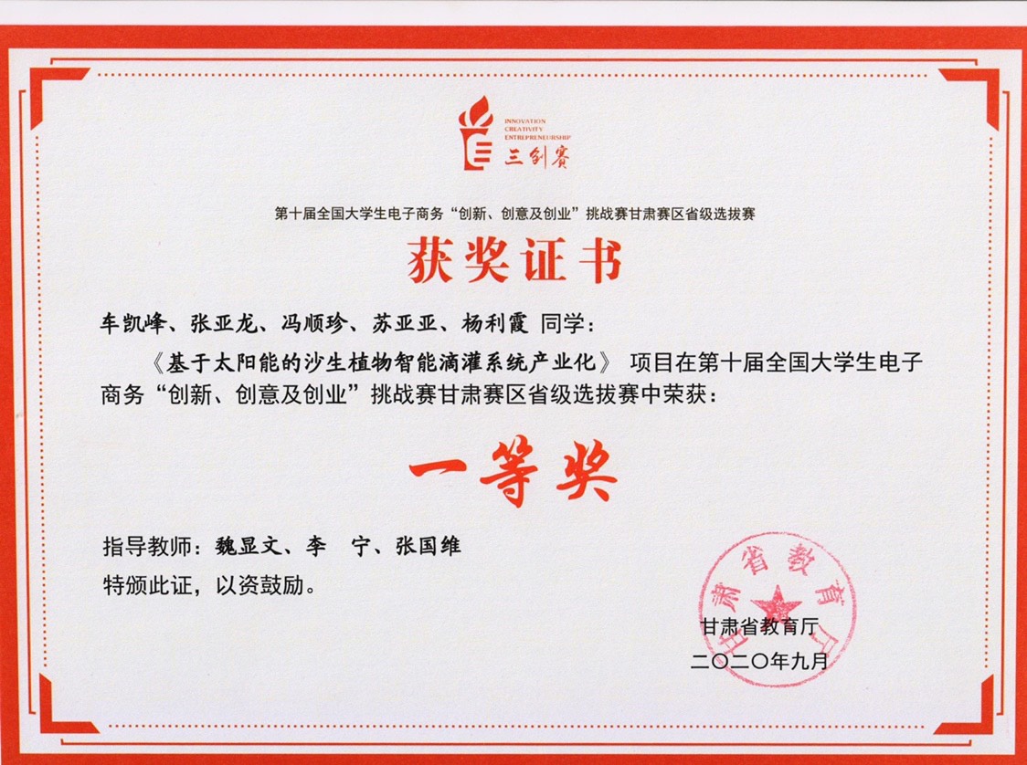 第十屆全國大學(xué)生電子商務(wù)“創(chuàng)新、創(chuàng)意及創(chuàng)業(yè)”挑戰(zhàn)賽甘肅賽區(qū)省級選拔賽一等獎