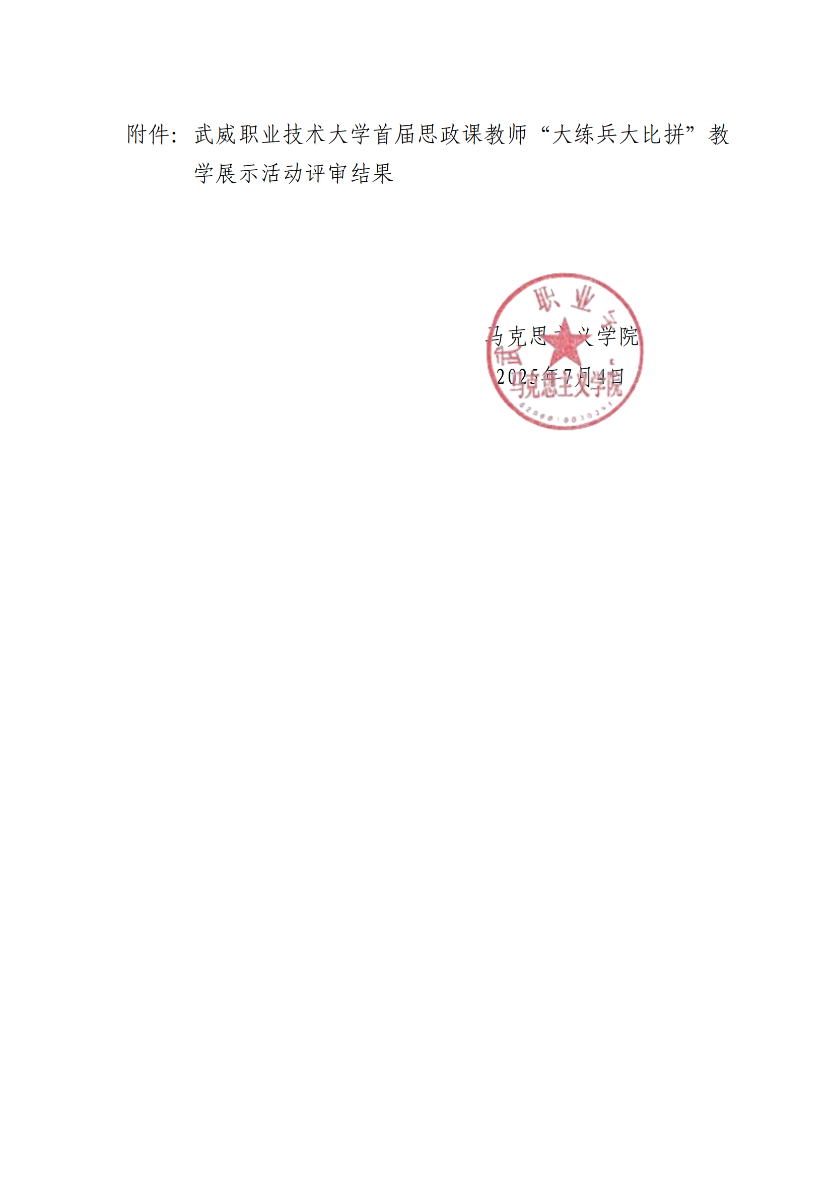 武威職業(yè)技術(shù)大學(xué)首屆思政課教師“大練兵大比拼”教學(xué)展示活動(dòng)評(píng)審結(jié)果的公示