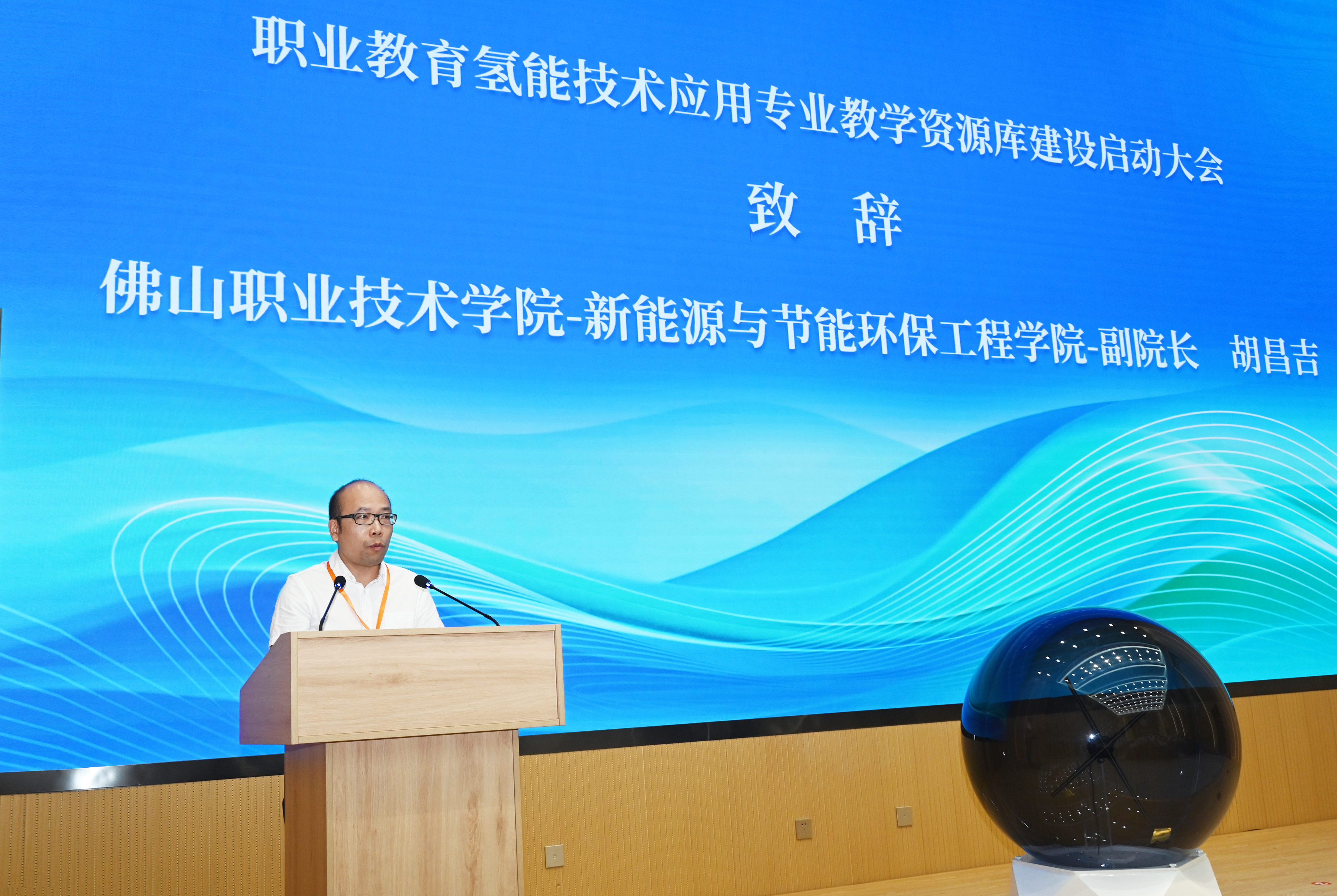 在參會領(lǐng)導(dǎo)和嘉賓的共同見證下,舉行了職業(yè)教育氫能技術(shù)應(yīng)用專業(yè)教學(xué)資源庫建設(shè)啟動儀式。隨著啟動球的點亮,標(biāo)志著資源庫建設(shè)正式啟動。