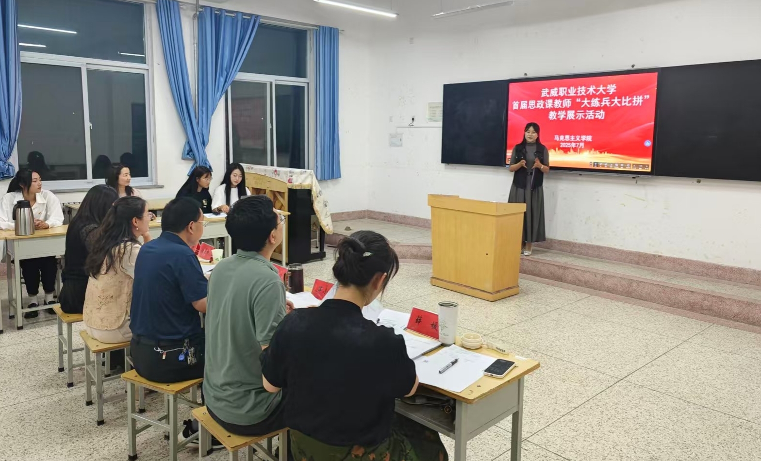 7月3日,武威職業(yè)技術(shù)大學首屆思政課教師“大練兵大比拼”教學展示活動在勵勤樓206教室成功舉辦?;顒又荚谕苿有聲r代思想政治理論課高質(zhì)量發(fā)展,提升思政課教師教學水平,打造高素質(zhì)思政課教師隊伍。
