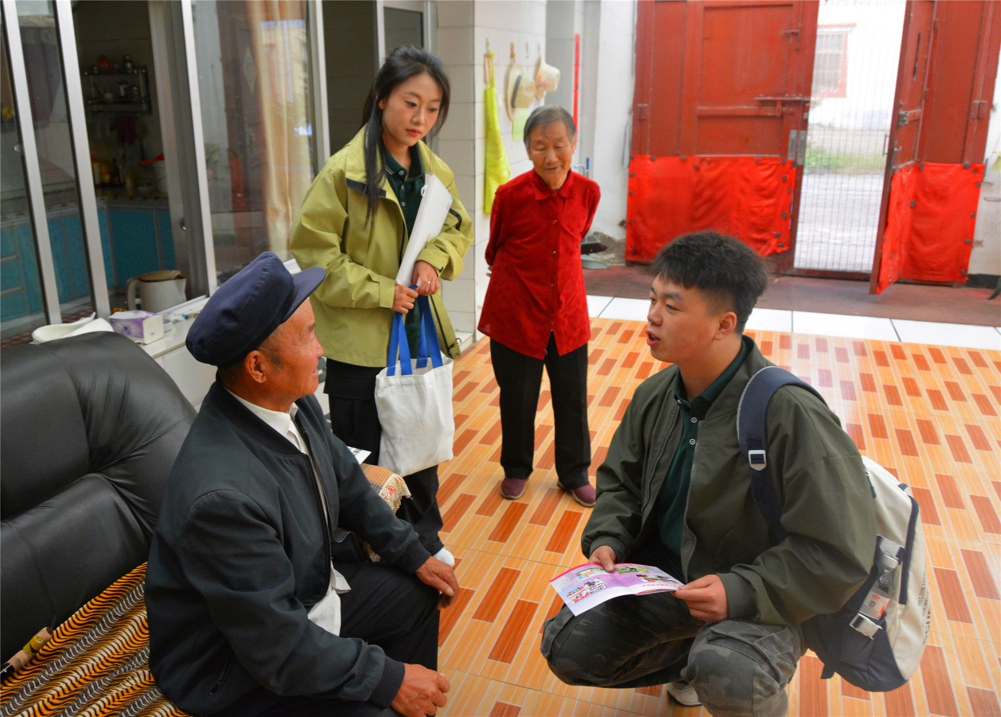 志愿者們穿梭于村巷院落,他們與村民圍坐炕頭、庭院,用溫暖的笑容和真誠的言語,了解村民生產(chǎn)生活、子女教育現(xiàn)狀以及對普通話學(xué)習(xí)的真實想法與需求。