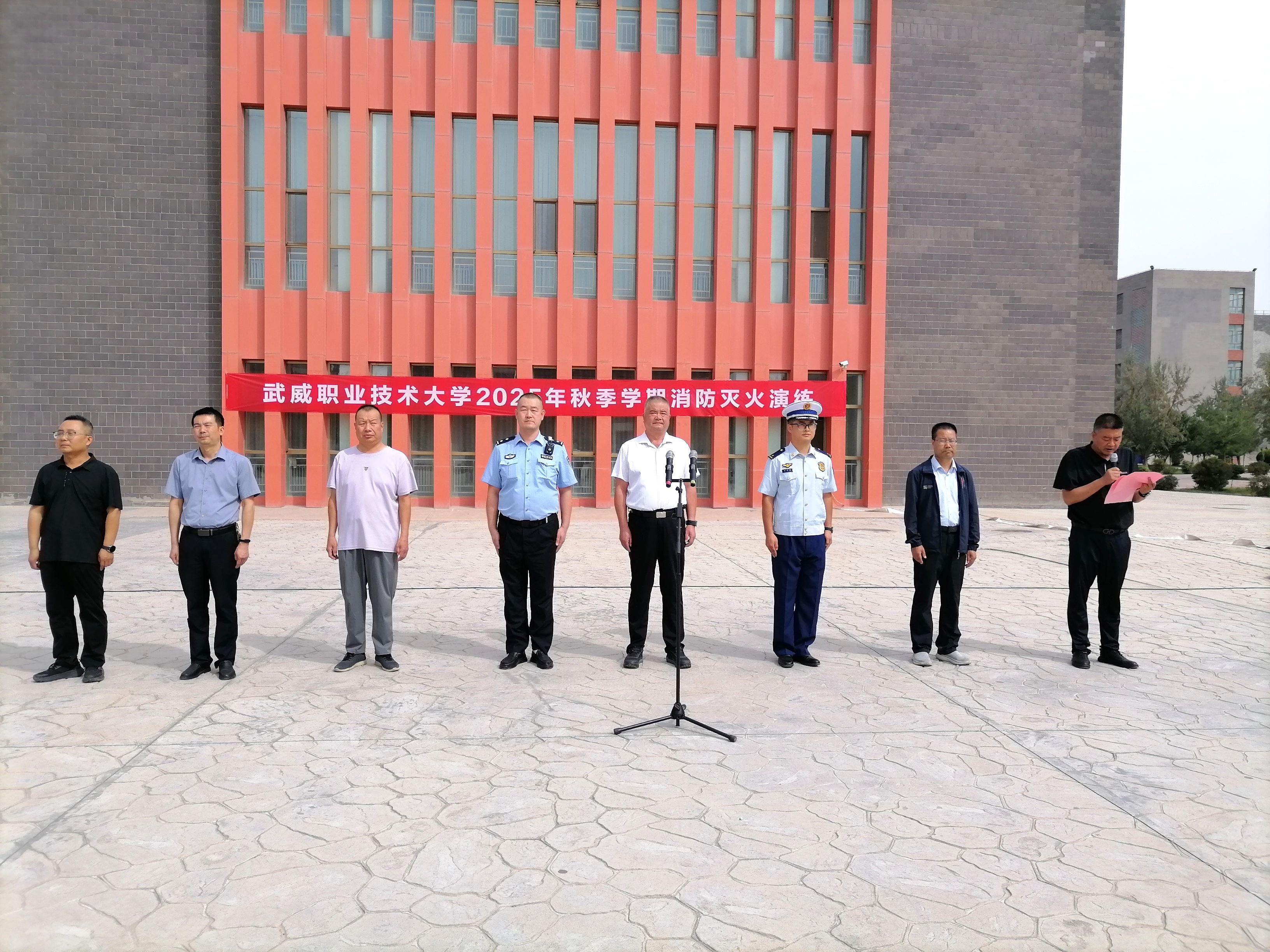 9月10日,學校舉行2025年秋季學期安全主題集中宣傳教育和應(yīng)急疏散暨滅火演練活動,學校新進教師,食堂、鍋爐房、實驗實訓室等重點崗位管理人員,2025級全體學生共5000余人參加演練。學校黨委委員、副校長王守云,軍訓教官,武威市公安局相關(guān)部門同志,各學院、各部門負責人現(xiàn)場觀摩演練。演練活動由安全保衛(wèi)處處長李欣主持。