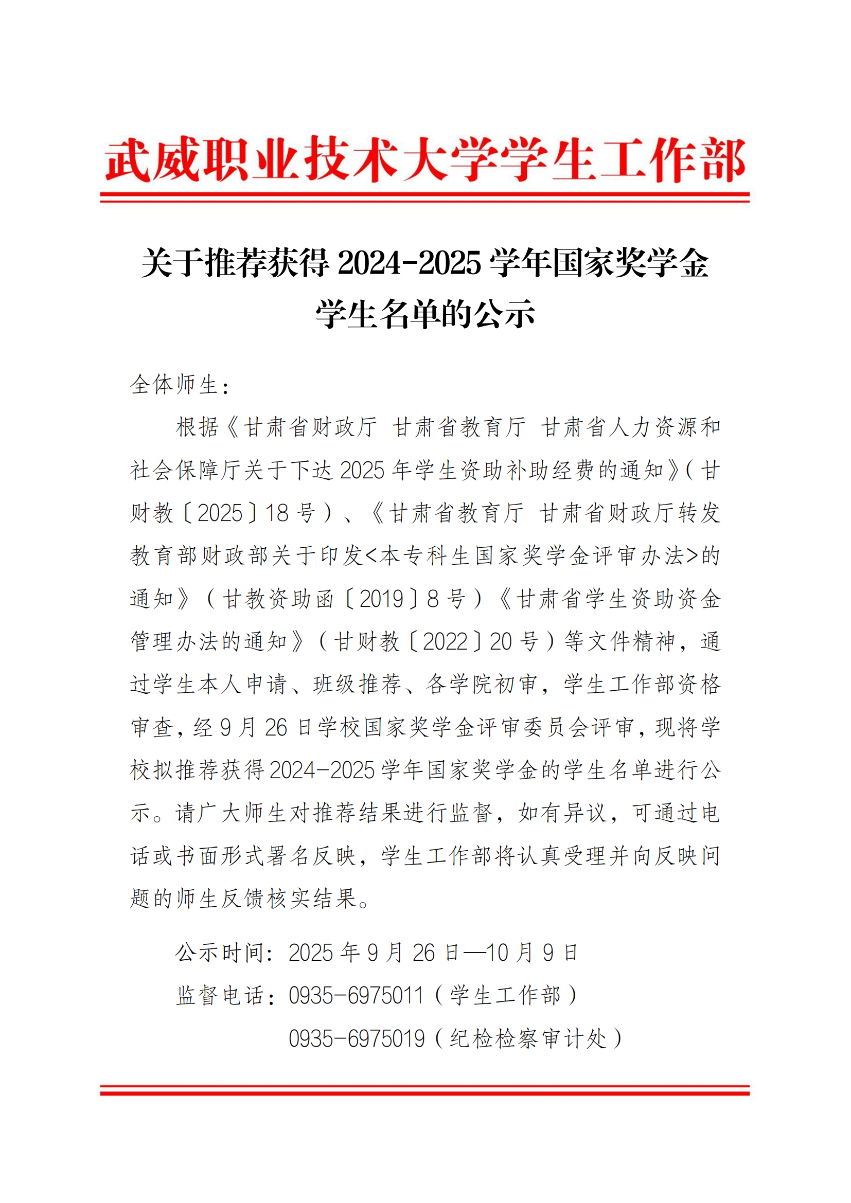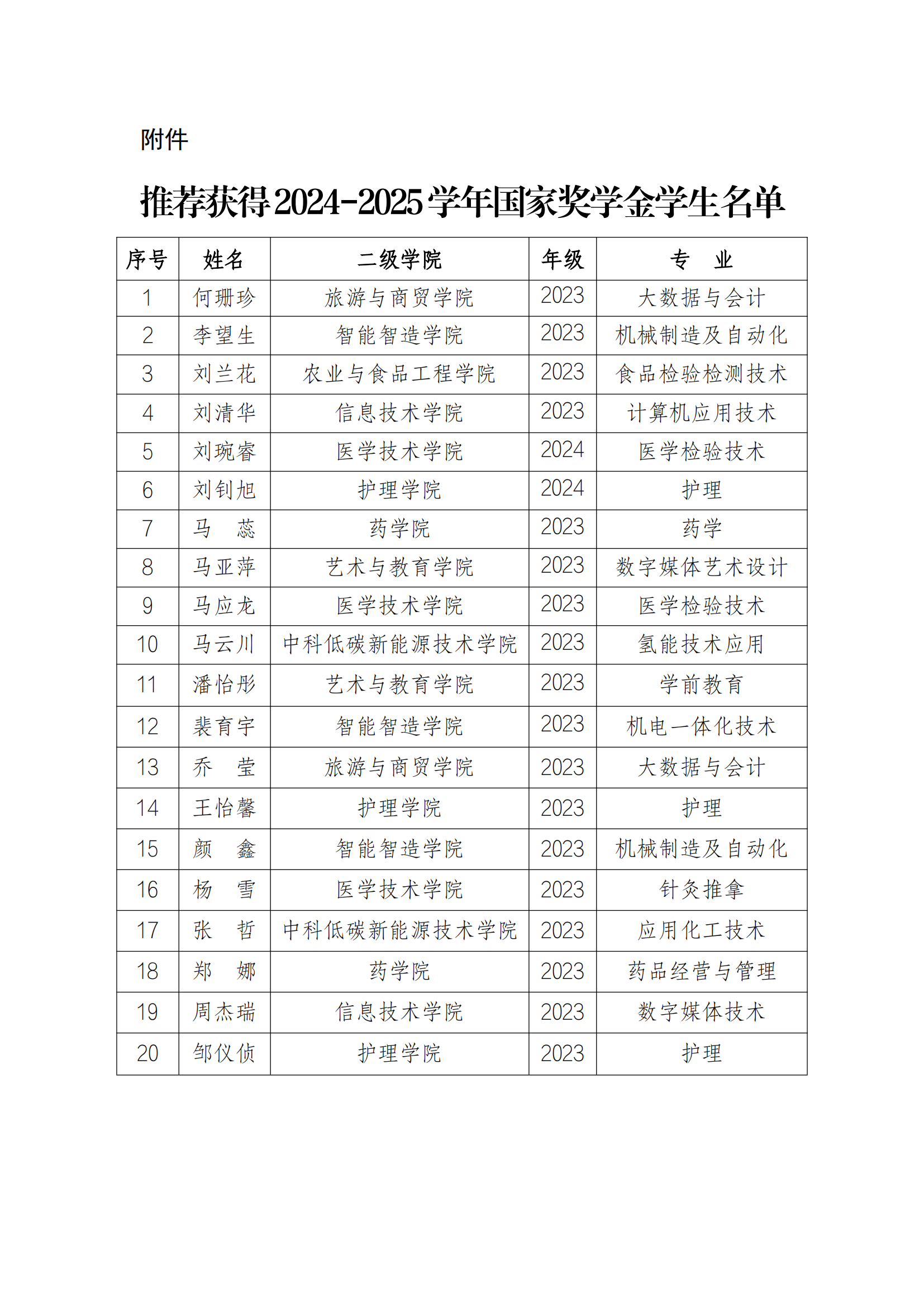 關(guān)于推薦獲得2024-2025學(xué)年國家獎學(xué)金學(xué)生名單的公示