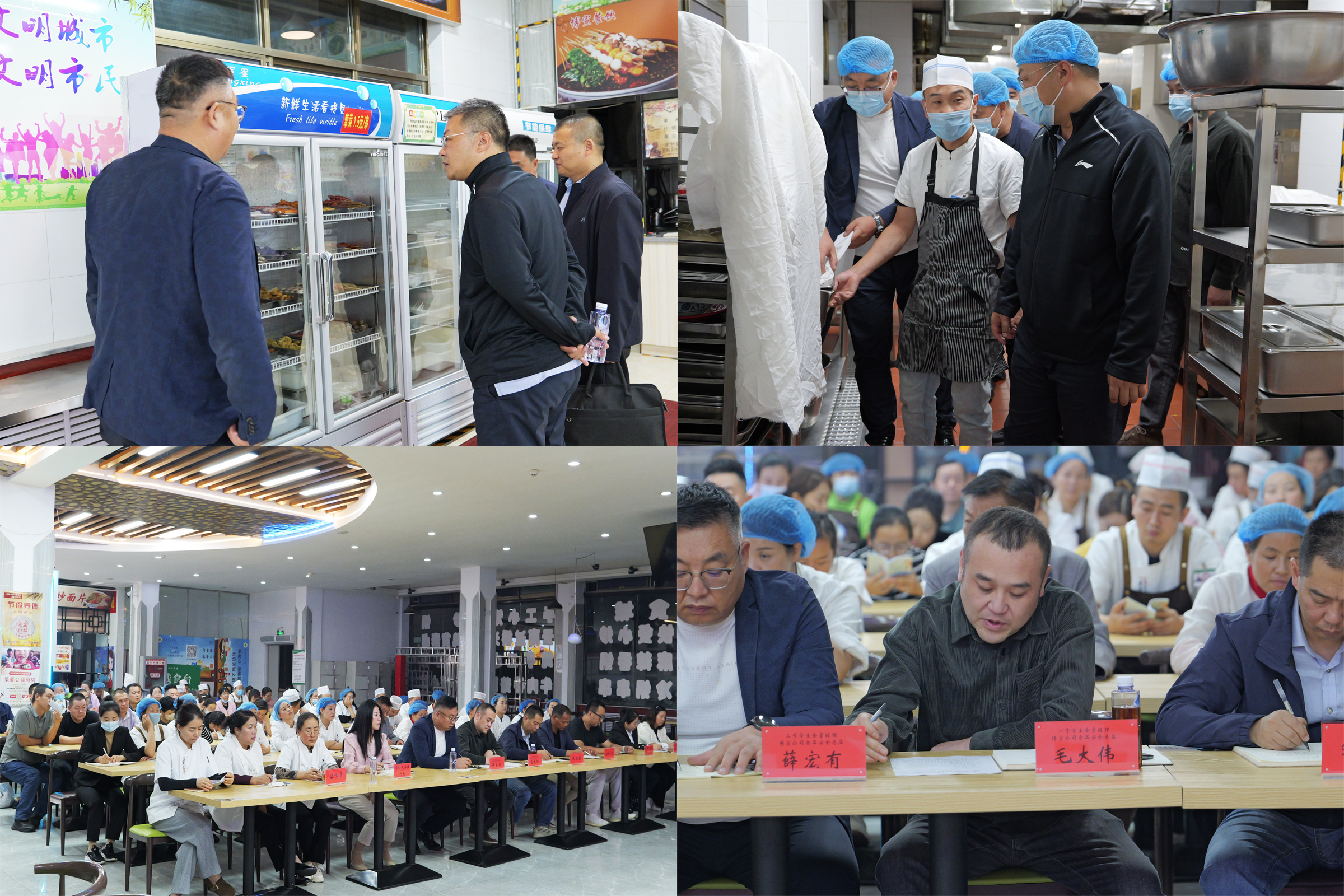 會后,李海軍和食品安全管理人員實地檢查了餐具清洗區(qū)、食品加工區(qū)、留樣區(qū)等重點區(qū)域,詳細(xì)了解了食材儲存、加工流程、菜品留樣、餐具消毒等環(huán)節(jié)及食堂整體衛(wèi)生狀況。