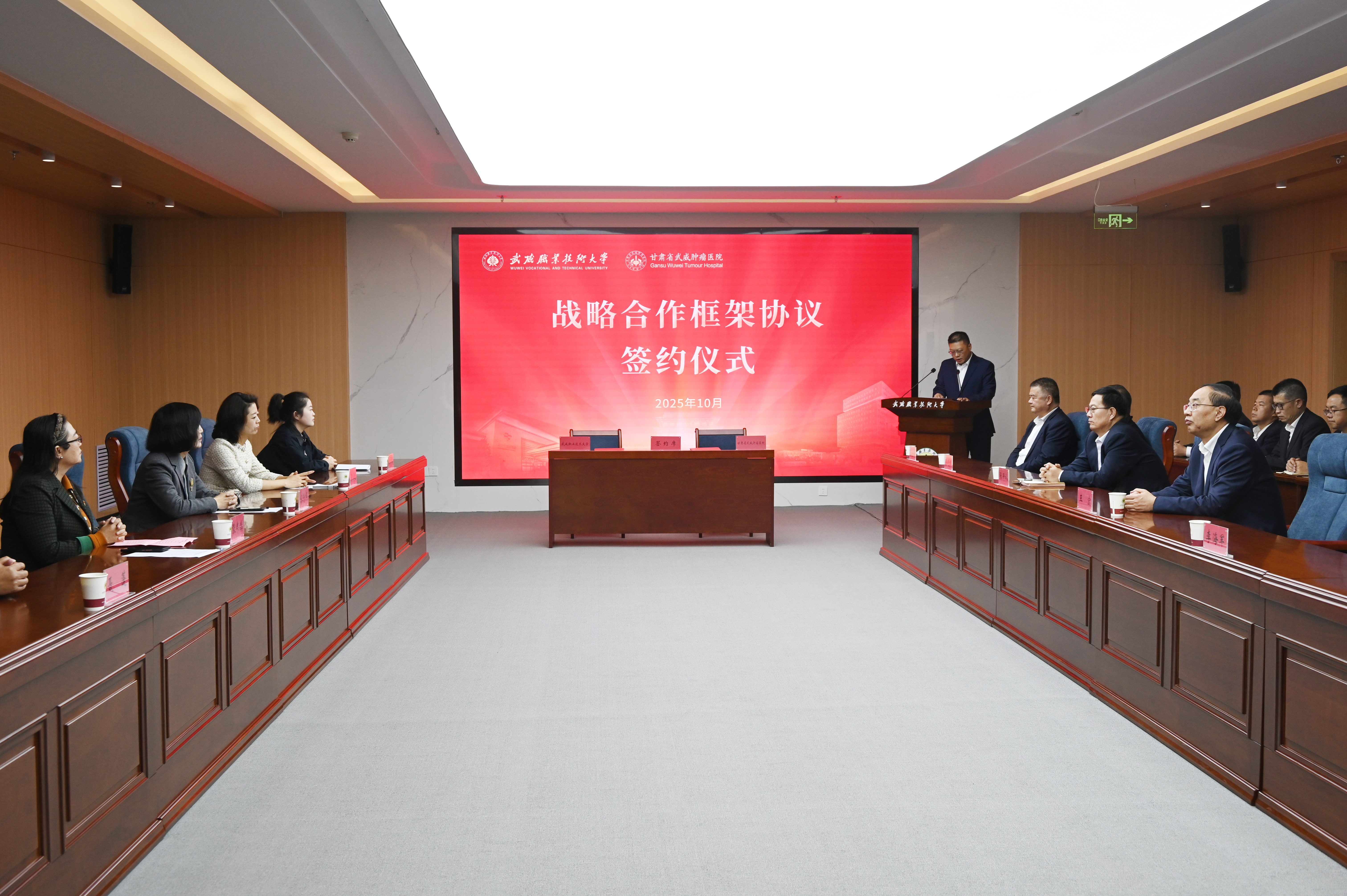 10月12日下午,武威職業(yè)技術(shù)大學(xué)與甘肅省武威腫瘤醫(yī)院舉行戰(zhàn)略合作框架協(xié)議簽約儀式,標(biāo)志著雙方合作進入新階段。這是落實“健康中國”戰(zhàn)略、推動醫(yī)療與教育深度融合的重要舉措,將助力“健康甘肅”建設(shè)和武威市“兩擎牽引、五極迸發(fā)”發(fā)展格局。