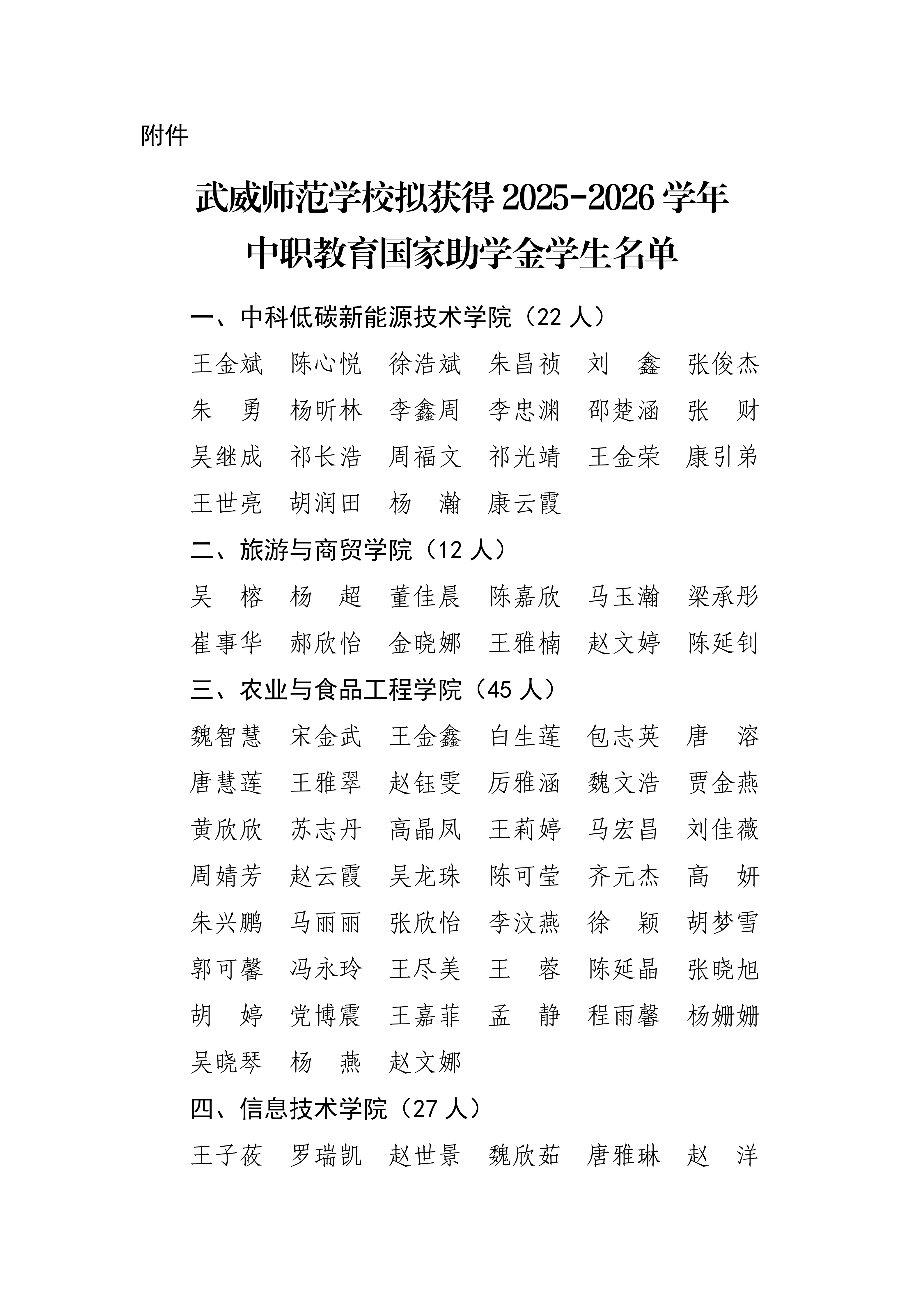 甘肅省武威師范學(xué)校關(guān)于2025-2026學(xué)年國(guó)家助學(xué)金評(píng)選結(jié)果的公示