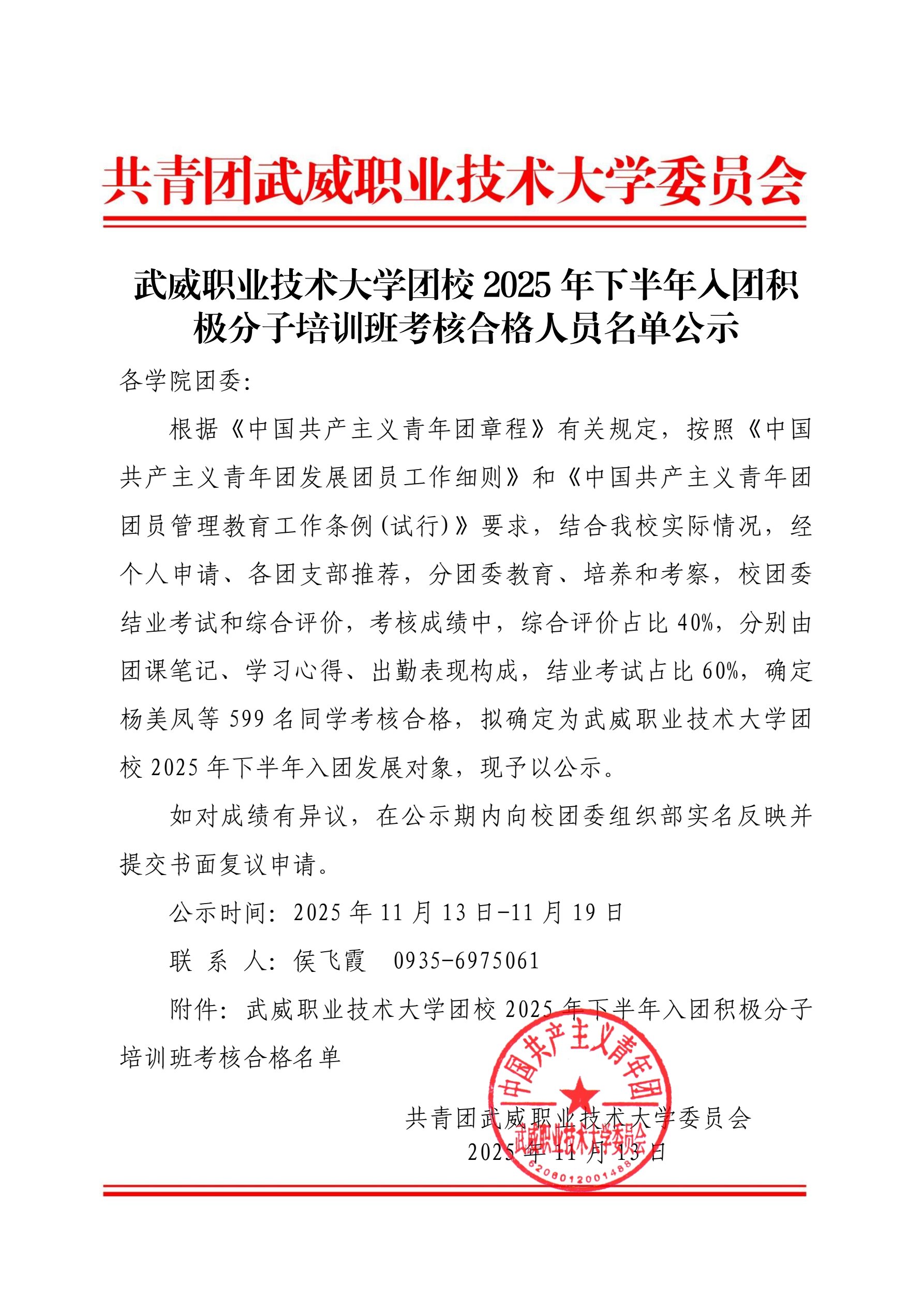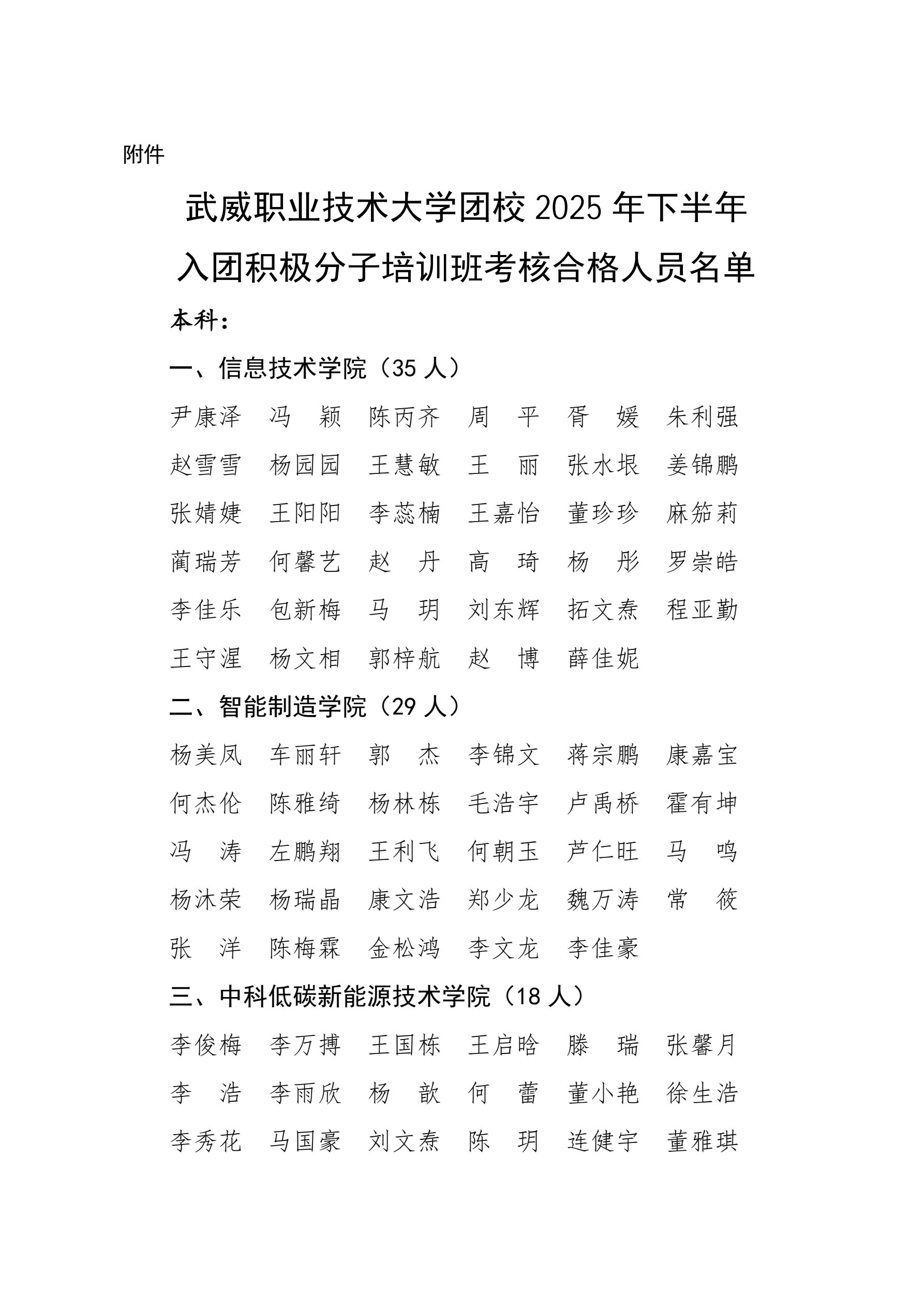武威職業(yè)技術(shù)大學(xué)團(tuán)校2025年下半年入團(tuán)積極分子培訓(xùn)班考核合格人員名單公示