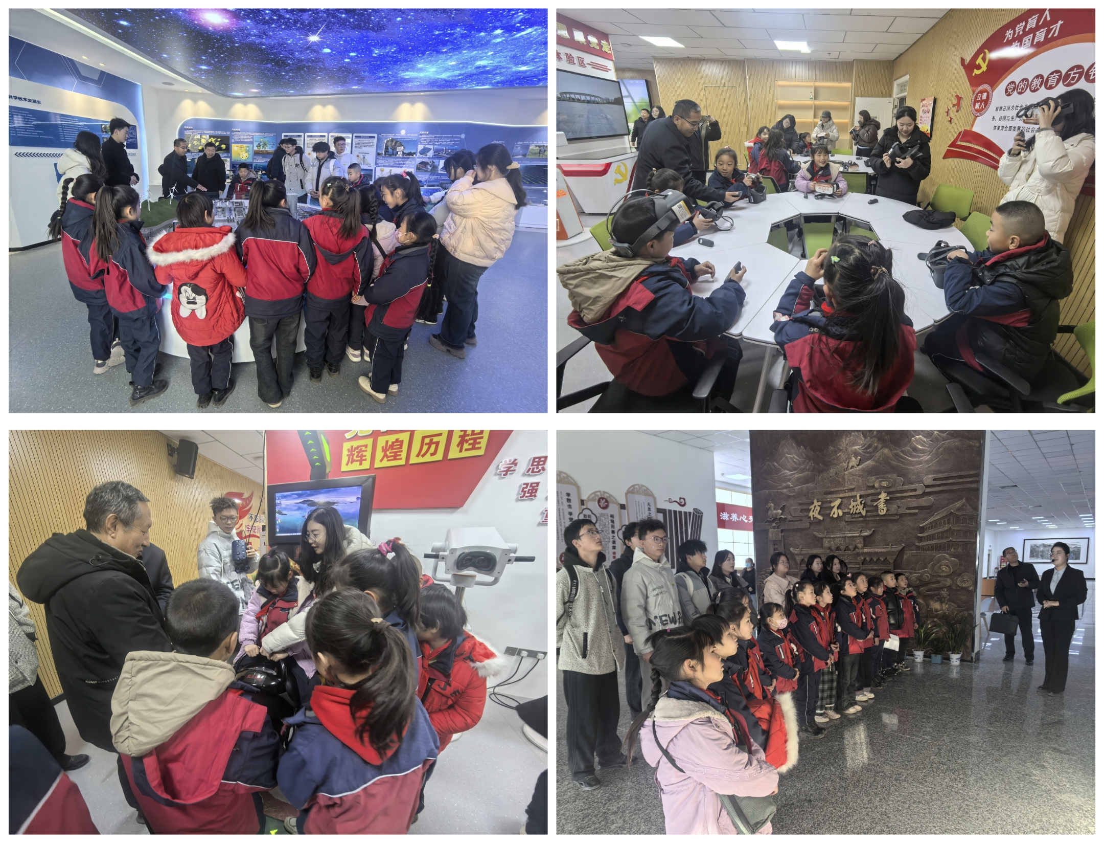 共建簽約儀式后,學(xué)生們參觀了學(xué)校圖書館、新能源科技館、課程思政教學(xué)研究示范中心等場館。孩子們穿梭于書香四溢的閱覽區(qū),駐足于各種先進(jìn)的模型與互動裝置前,直觀感受VR技術(shù)賦能思政課堂的創(chuàng)新魅力,眼神中充滿了對知識的渴望與探索,這次參觀不僅是一次校園環(huán)境體驗,更是一次深刻的“潤物細(xì)無聲”思政教育,在孩子們心中播下了求知與創(chuàng)新的種子。