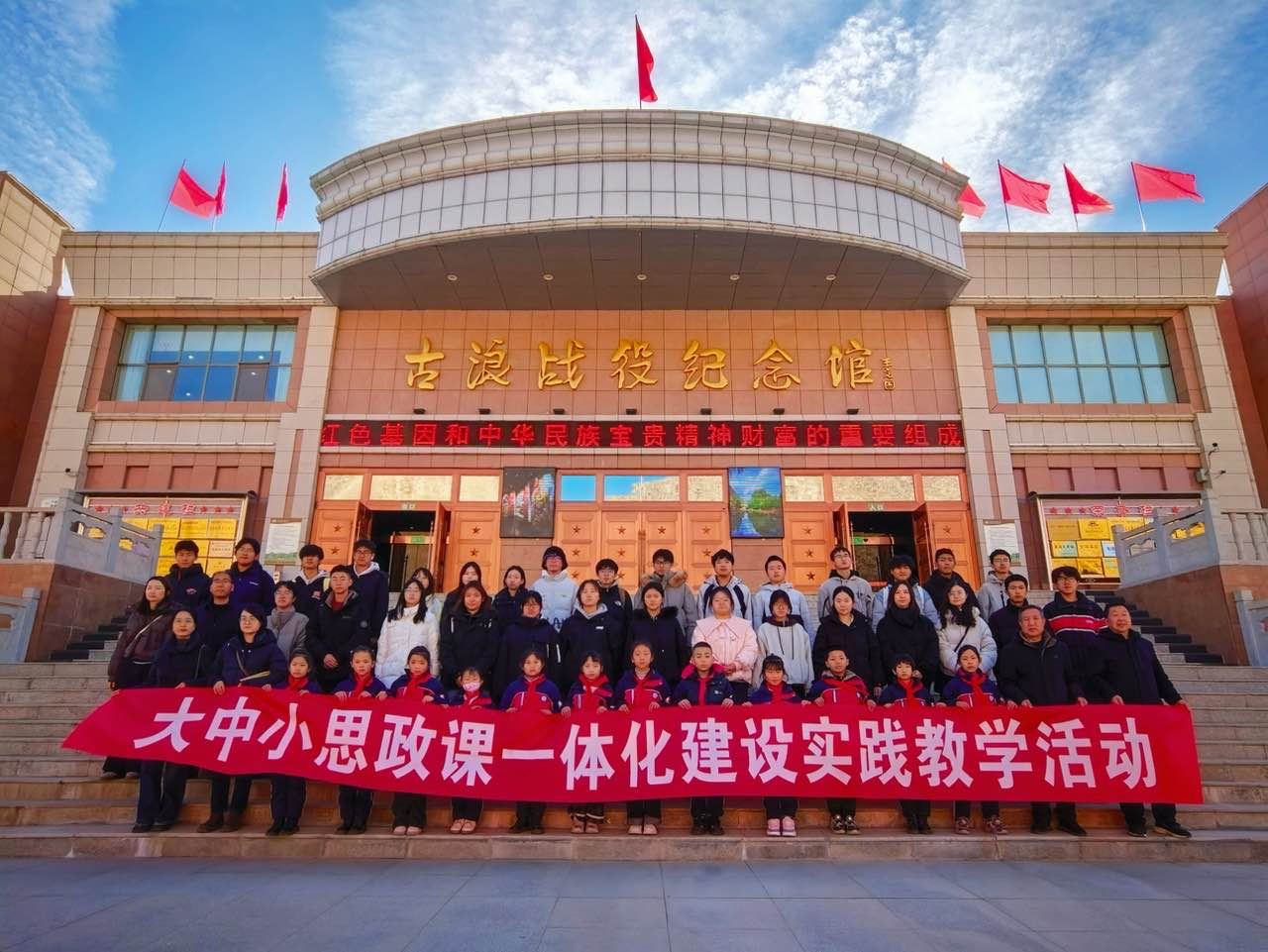 校園參觀結(jié)束,雙方共同前往學(xué)?!按笏颊n”實踐教學(xué)基地---古浪戰(zhàn)役紀(jì)念館,開展了一場生動而深刻的“大思政課”實踐教學(xué)活動。在莊嚴(yán)肅穆的紀(jì)念館內(nèi),全體人員通過觀看歷史文物、聆聽現(xiàn)場講解、緬懷革命先烈,深刻感悟了紅色江山的來之不易,接受了偉大的革命精神洗禮。