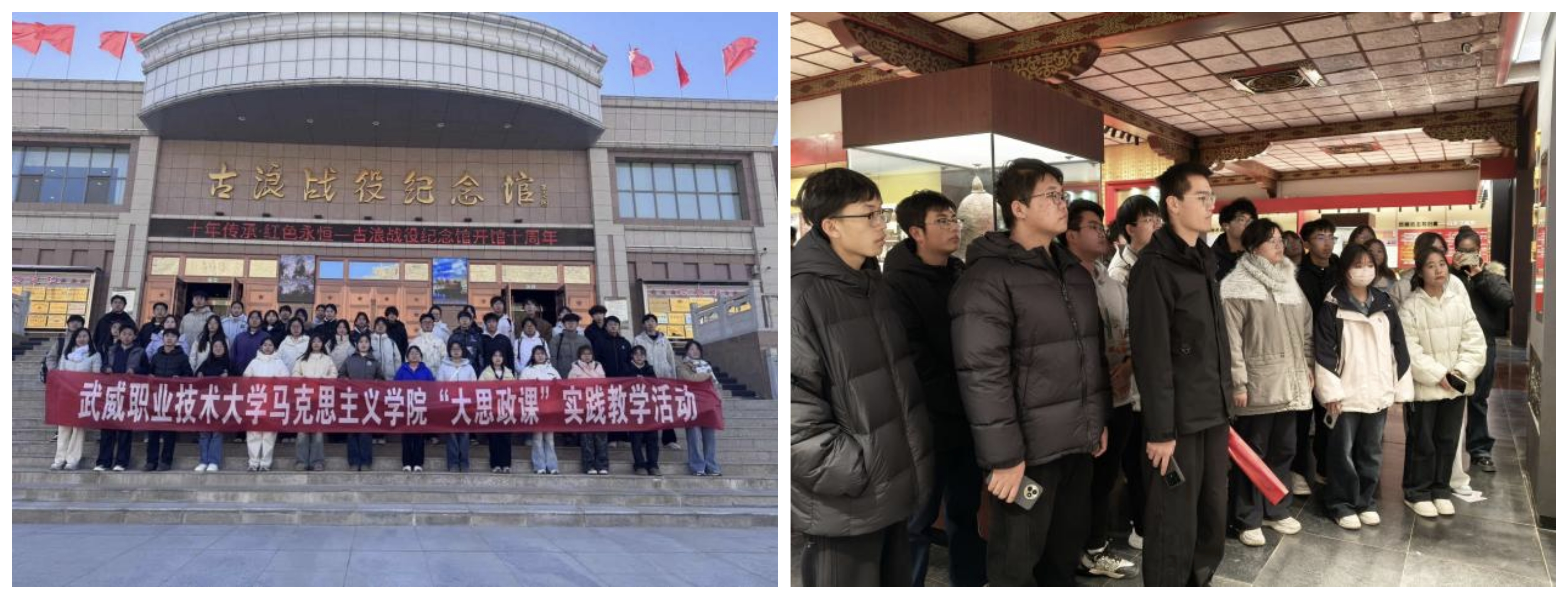 為深入推進(jìn)“大思政課”建設(shè),創(chuàng)新實(shí)踐育人模式,引導(dǎo)學(xué)生在實(shí)踐中感悟思想偉力、砥礪奮斗精神,11月21日—28日,馬克思主義學(xué)院分三個(gè)批次組織首批本科專(zhuān)業(yè)學(xué)生前往實(shí)踐教學(xué)基地古浪戰(zhàn)役紀(jì)念館和涼州會(huì)盟紀(jì)念館,開(kāi)展了一場(chǎng)深刻而生動(dòng)的“行走的思政課”實(shí)踐教學(xué)活動(dòng)。