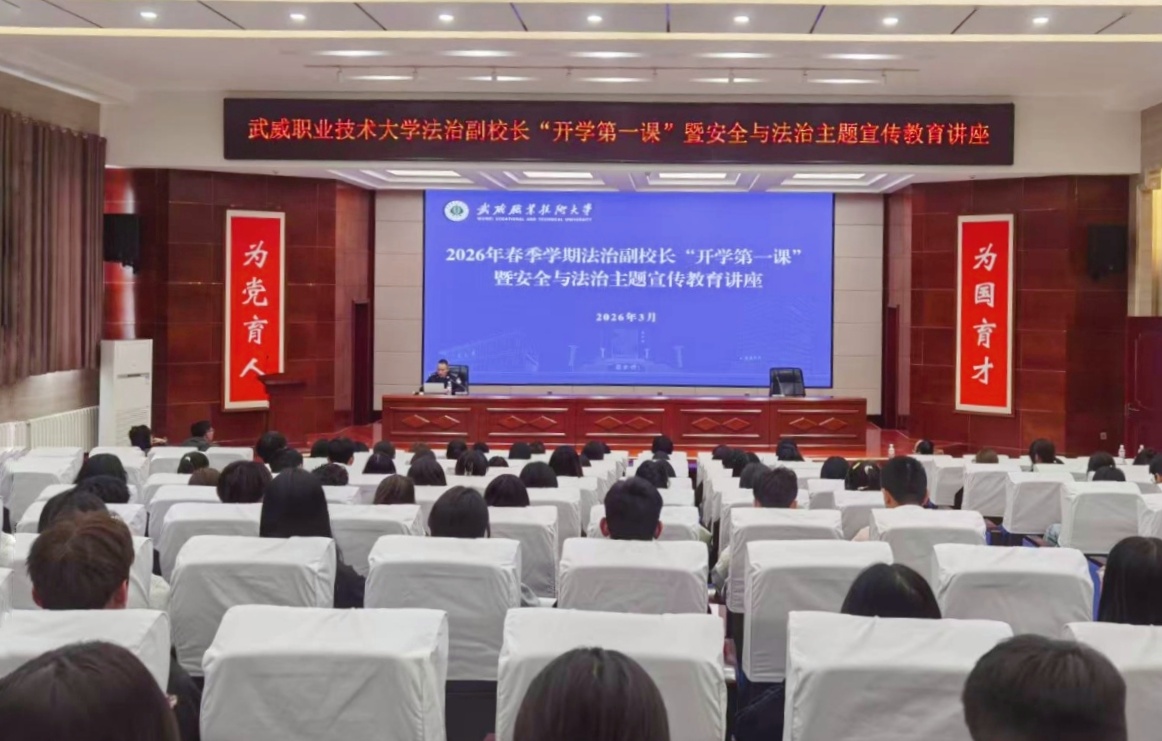 春啟新程,法護成長。3月10日,武威職業(yè)技術(shù)大學(xué)開展法治副校長“開學(xué)第一課”暨安全與法治主題宣講活動,旨在強化師生法治觀念,提升安全防范意識和自我保護能力,筑牢校園安全防線。安全保衛(wèi)處、學(xué)生工作部相關(guān)負(fù)責(zé)人,各學(xué)院輔導(dǎo)員及學(xué)生代表共200余人現(xiàn)場參與活動。