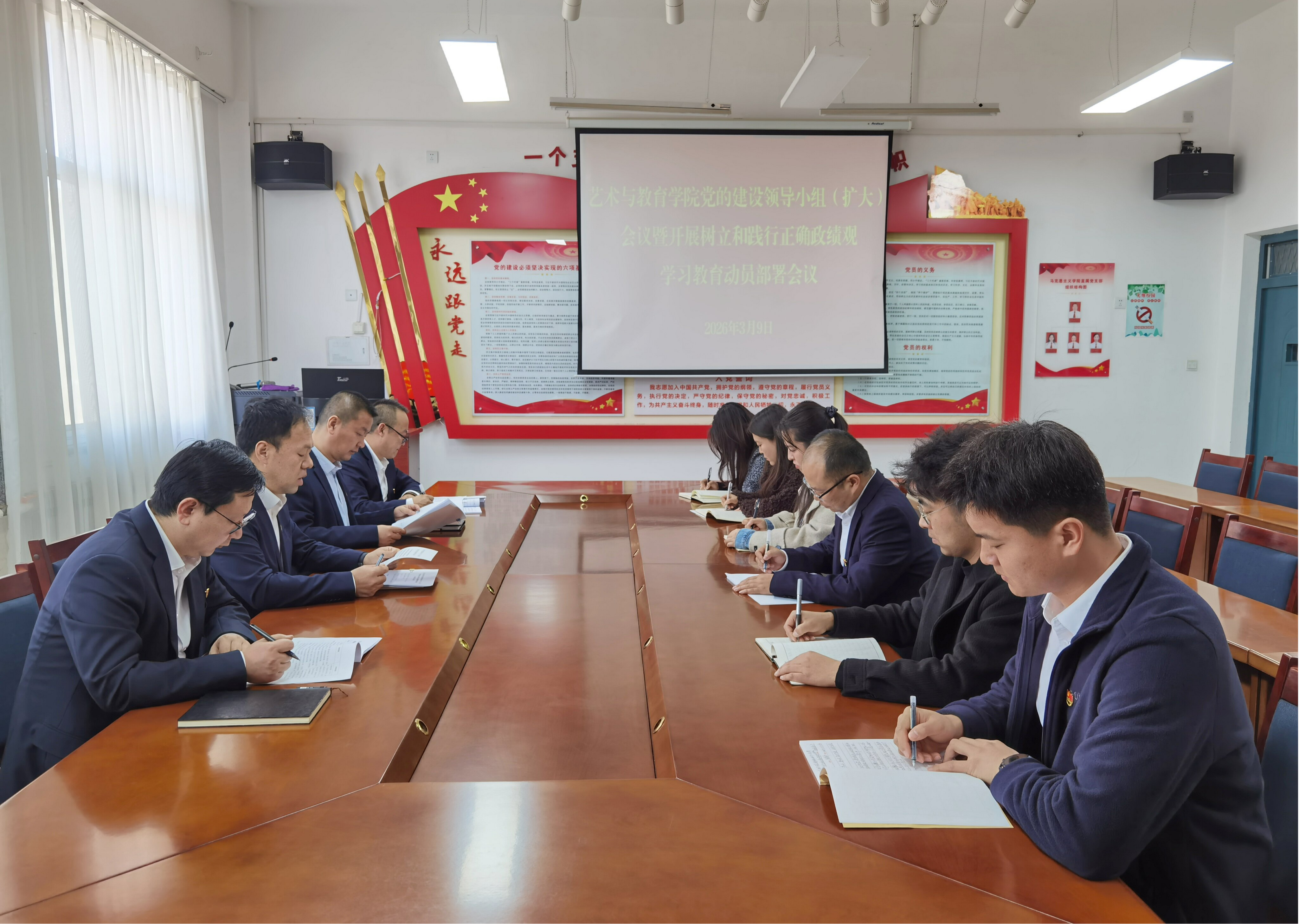 3月9日,藝術(shù)與教育學(xué)院召開樹立和踐行正確政績觀學(xué)習(xí)教育動(dòng)員部署會(huì)議,對開展樹立和踐行正確政績觀學(xué)習(xí)教育進(jìn)行全面動(dòng)員、系統(tǒng)部署。