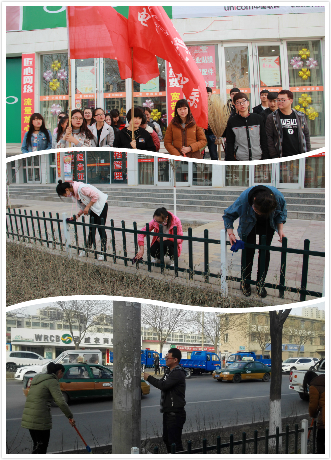 電子信息工程系團(tuán)總支結(jié)合團(tuán)市委、院團(tuán)委《關(guān)于開展城鄉(xiāng)環(huán)境衛(wèi)生整治青年志愿服務(wù)活動(dòng)的通知》安排,3月3日下午16:30組織20名團(tuán)員青年在學(xué)院北門口道路兩側(cè)開展了衛(wèi)生死角清掃,柵欄清潔,果皮箱清潔,公交站臺(tái)清潔,小廣告清理,垃圾清運(yùn)。學(xué)生志愿者盡己所能,服務(wù)社會(huì),傳播勞動(dòng)信念,為建設(shè)美好社會(huì)貢獻(xiàn)自己的一份微薄力量。